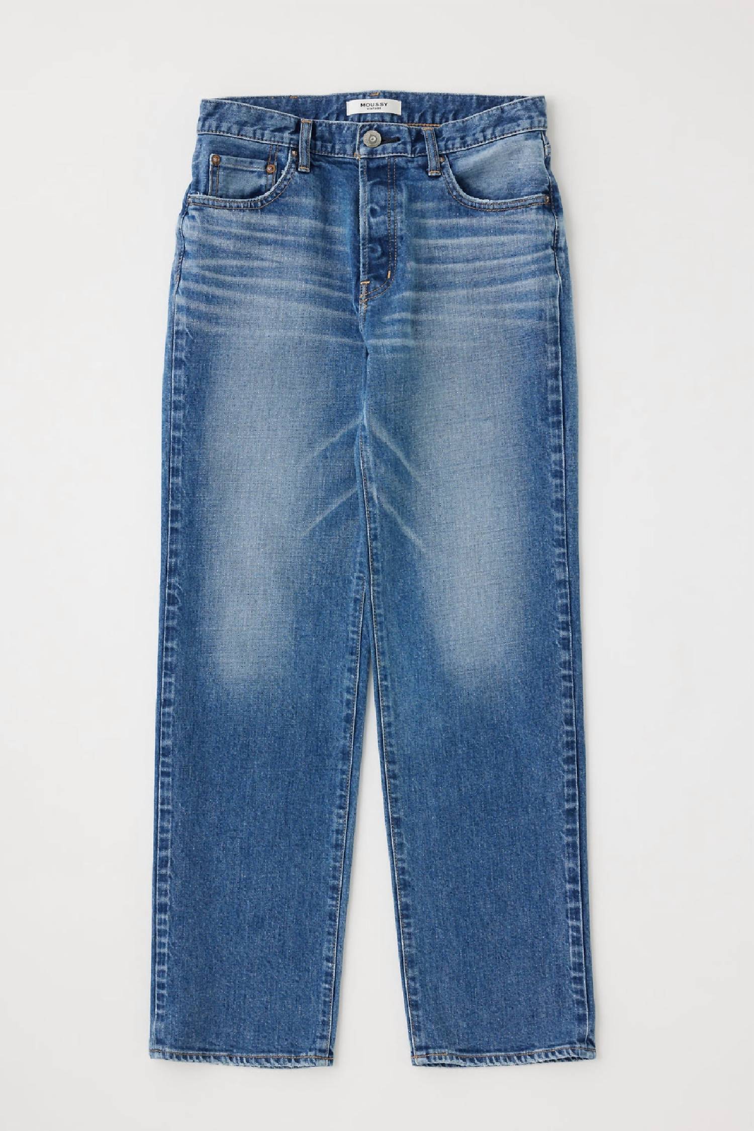 This Straight Leg Jeans offer a relaxed fit with a mid-rise silhouette made from 99% cotton and 1% spandex. Featuring a button fly closure and textured pockets, they are easy to care for with a machine wash on a delicate cycle.