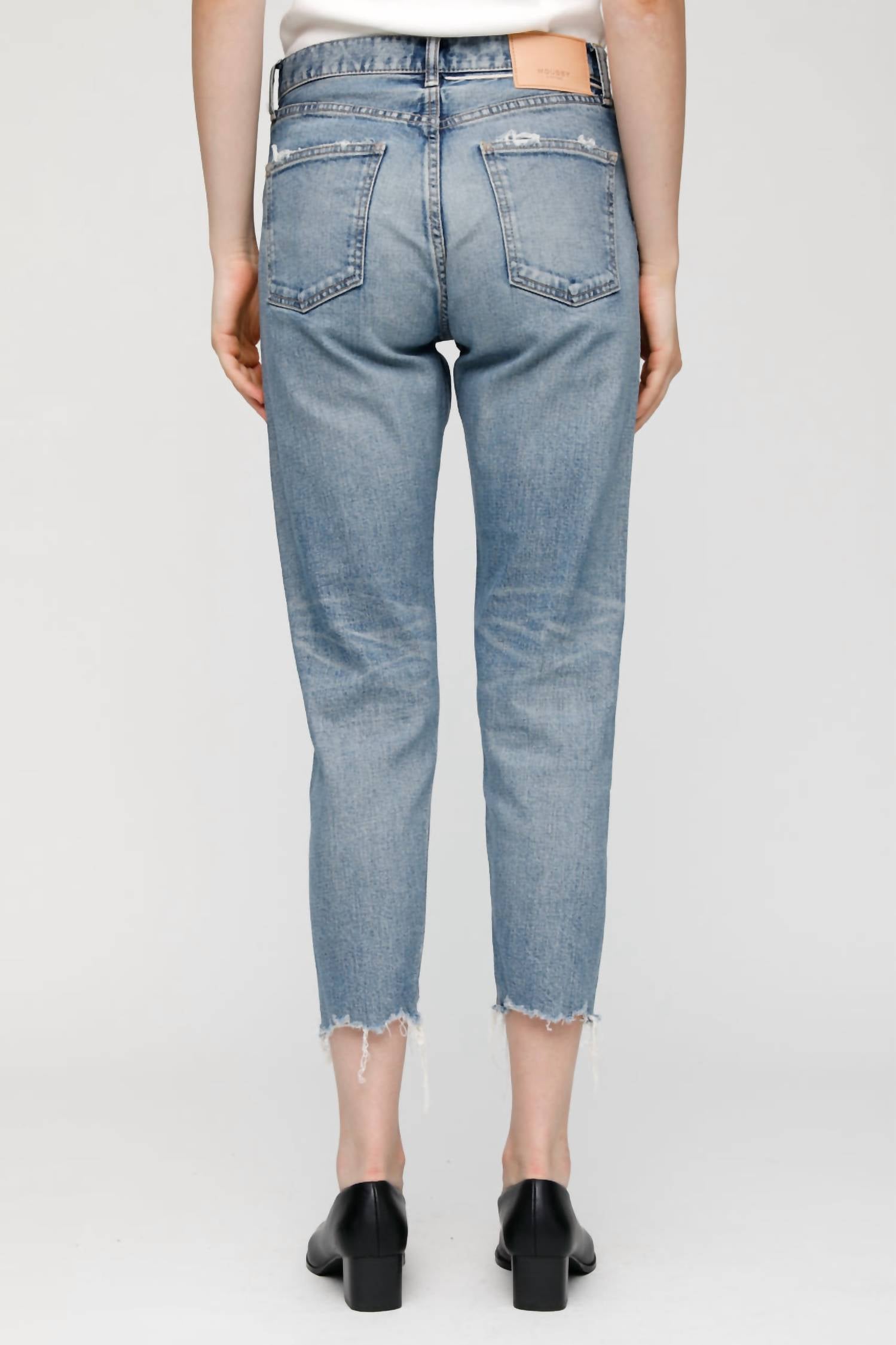 Comfortable and stylish, we love this cropped jean for all of the obvious reasons. Discover the Carter Friend Jean by Moussy, a staple for your minimalist spring wardrobe in a classic high-rise fit. These medium wash denim jeans feature a solid pattern with a straight leg design and a 10.2" rise, paired with a 26.2" inseam for a flattering silhouette. Crafted from a cotton blend of 98% cotton and 2% spandex, they promise comfort and ease of movement, complemented by a button closure and functional pockets. Originating from Japan, they require machine wash cold on a delicate cycle, with care instructions advising against bleach, tumble drying, and dry cleaning. Cool iron with a press cloth recommended.