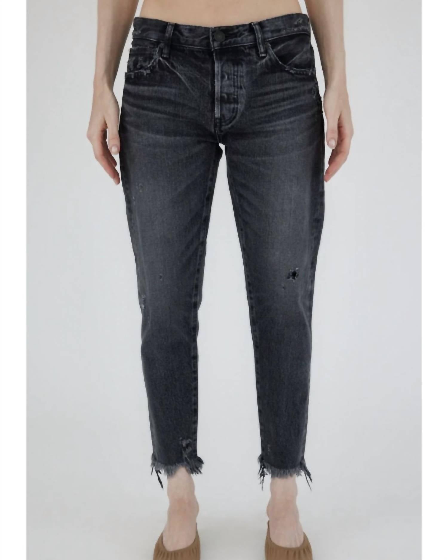 This classic straight leg jean has a perfect fit and goes with just about everything. Upgrade your denim collection with the Moussy Kearny Tapered Jeans in chic black, designed for an effortlessly cool look. Featuring a frayed hem and ankle-length fit, these low-rise jeans are crafted from 100% cotton for exceptional comfort. The tapered leg silhouette ensures a flattering fit, while the button and zip closure secures the jeans in place. These versatile jeans come with pockets and are perfect for any casual outing.