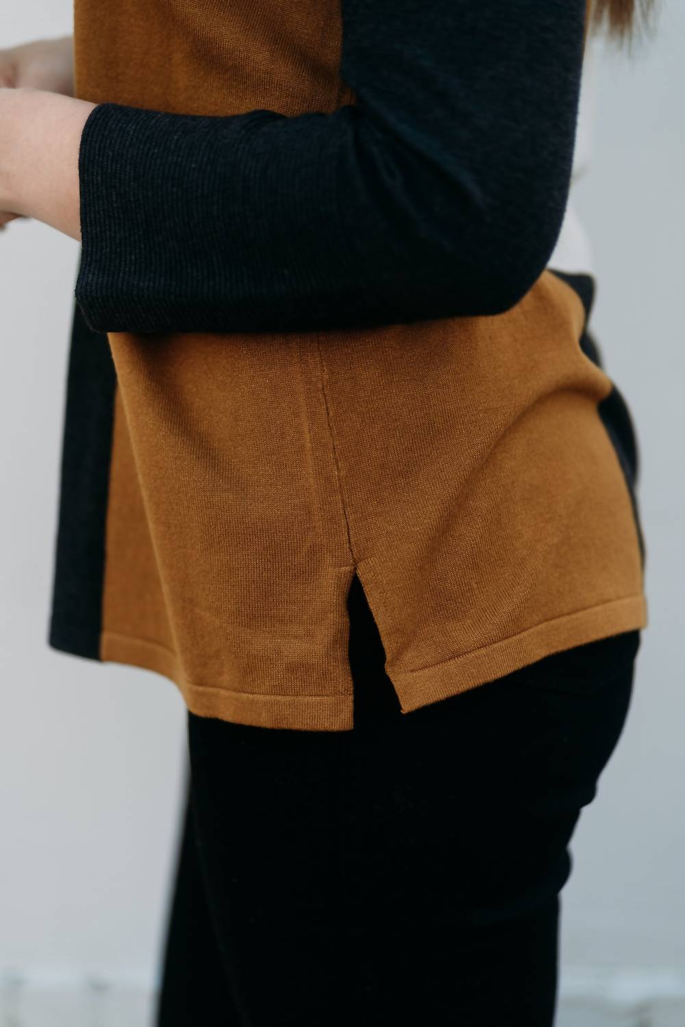 Elevate your wardrobe with the 3/4 Sleeve Jewel Neck Color Block Solid Sweater by Multiples. This stylish top features three-quarter sleeves and a timeless crewneck design, crafted from high-quality rayon in a vibrant multi-colored block pattern. Its sweater knit material ensures both style and comfort, making it a versatile addition to any closet. Designed with a pull-on closure for effortless wear.