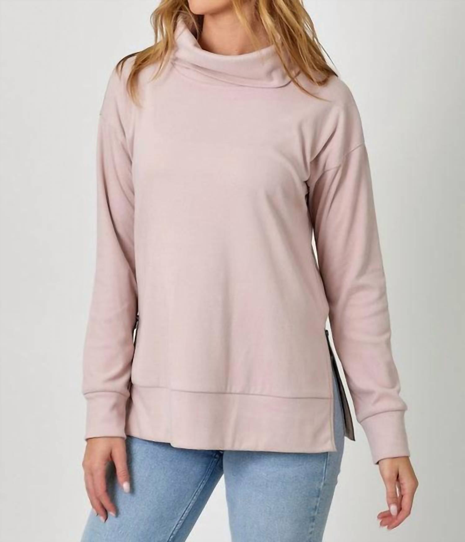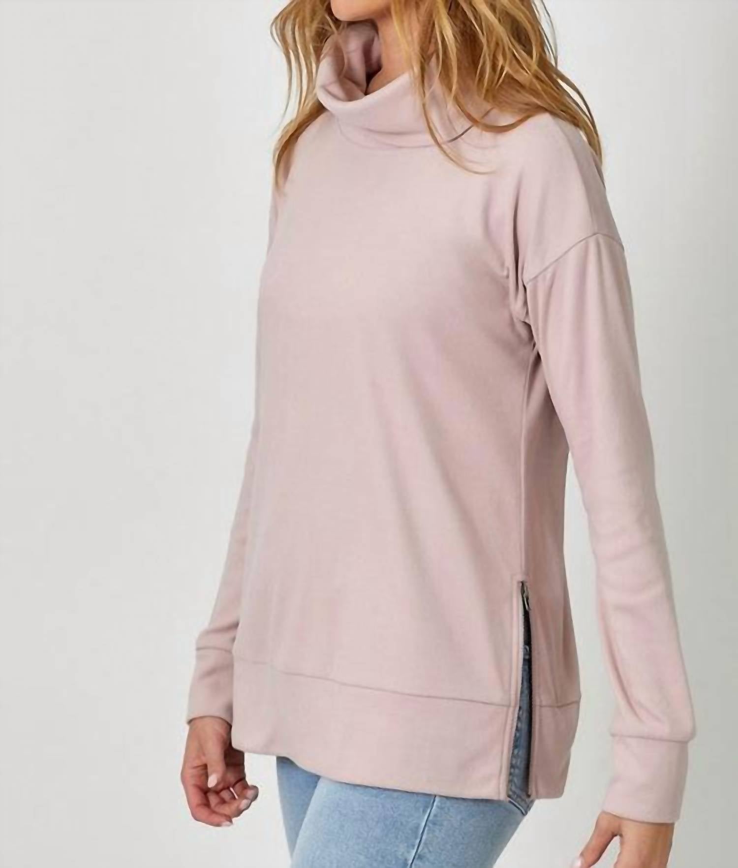 Indulge in cozy comfort with the Brushed Knit Turtleneck Sweatshirt by Mystree, crafted for women in a chic dusty rose hue. This minimalist sweatshirt features long sleeves and a solid pattern, making it perfect for both casual outings and dinner parties. With a pull-on closure, it offers ease and simplicity for the modern wardrobe.