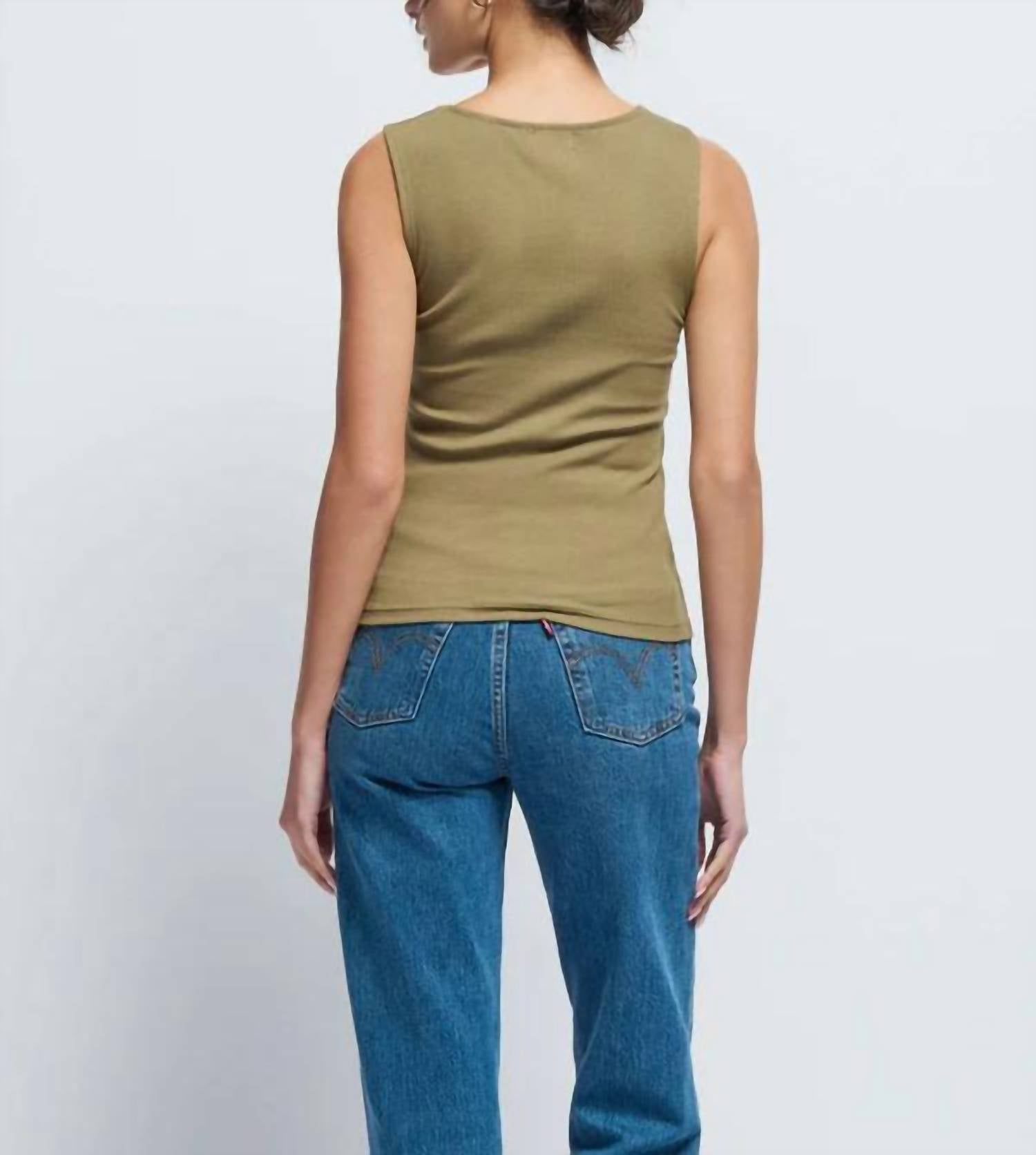 The perfect tank top for those warmer weather seasons. Elevate your wardrobe with the Tara V-neck Tank Top by Nation LTD, a minimalist staple in Capers Green. This sleeveless top is crafted from a cotton blend, featuring a flattering V-neckline and elegant shirring details. Designed as a pull-on, it offers ease of wear without compromising style. Ideal for summer occasions, this versatile tank is perfect for holiday parties and Thanksgiving celebrations.