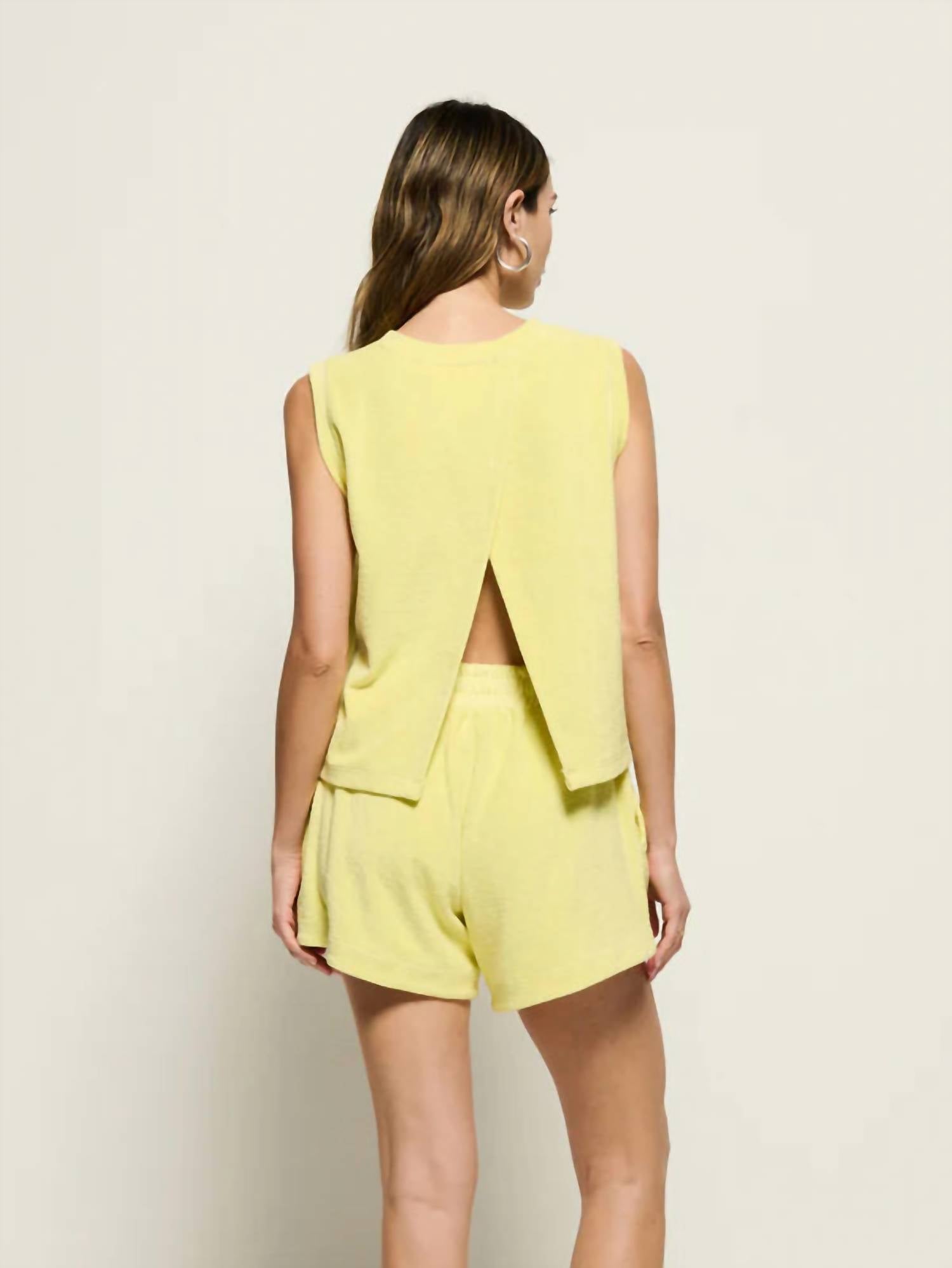 This classic tank top is perfect for layering and cute enough to wear on its own. Elevate your summer wardrobe with the Nara Muscle Tank Top by Nation LTD, expertly crafted in solid lavender cotton. This sleeveless tank combines a minimalist design with a nostalgic terry cloth texture, offering a chic yet comfortable fit. It features a crew neckline and a stylish foldover back detail, creating a boxy cropped look perfect for any beach escape. Closure: Pull on. Ideal for holiday parties or casual outings, this versatile piece adds a polished touch to your ensemble.