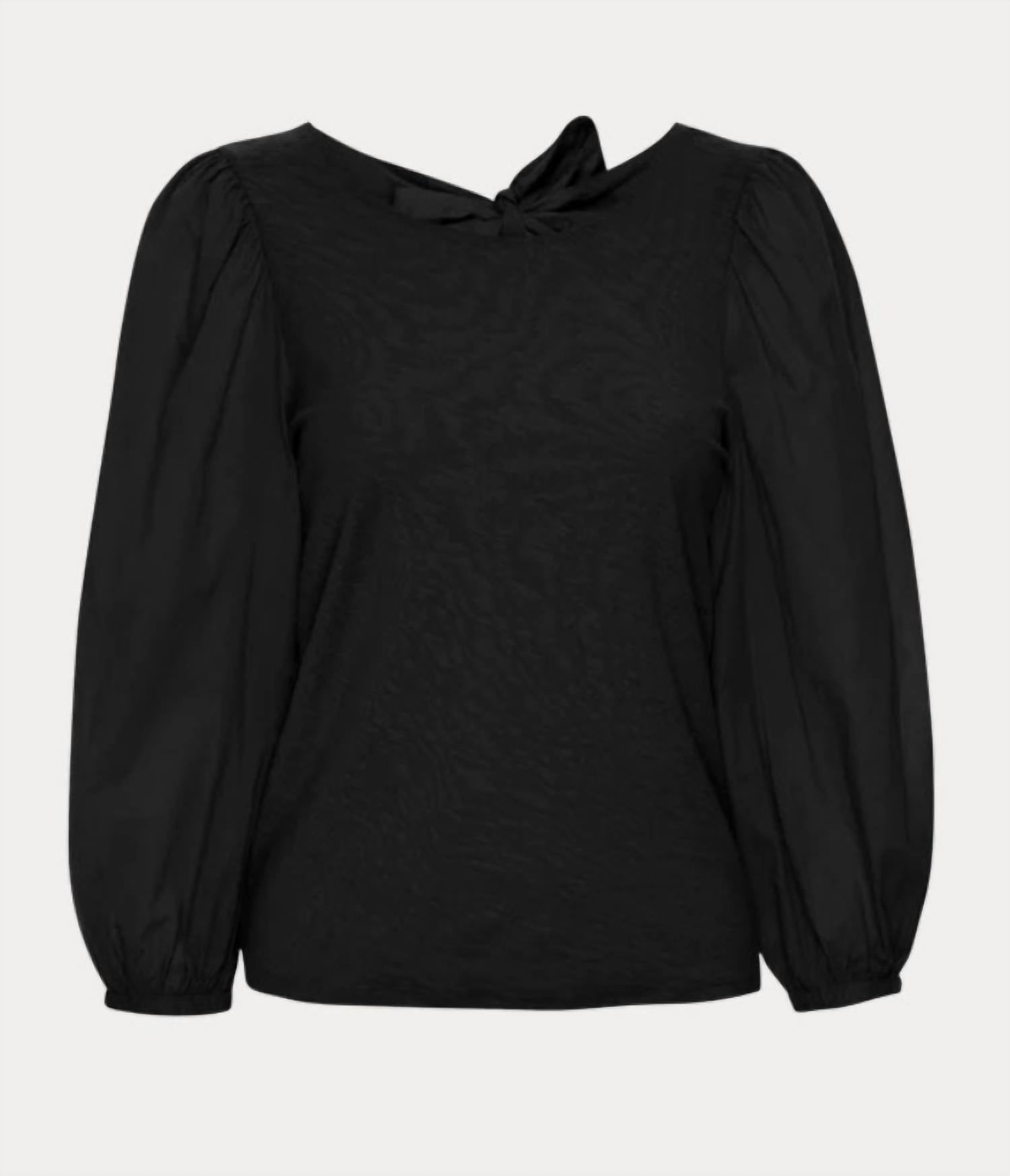 A versatile blouse that works from desk to dinner! Introducing the Shalom Tie Combo Tee by Nation LTD, a chic black tee that captivates with a high neck and 3/4 length cotton voile sleeves. Crafted from 100% Pima cotton, this solid, soft, and lightweight tee promises both comfort and style. Closure type: Pull on. Care: Machine wash and let flat dry. Perfect for workwear and special occasions like anniversaries and Valentine's Day.