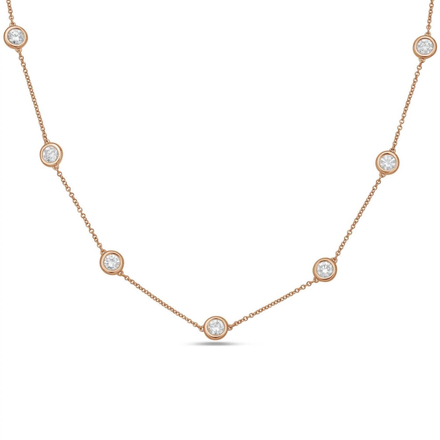 Layer this necklace or wear it on its own. Either way it's a win-win. Experience elegance with the 2.25 Cts Lab Grown Diamond By The Yard Necklace by Diana M Jewels, crafted in 14kt rose gold. This fine piece features round brilliant, lab-grown diamonds totaling 2.25 carats, set in a bezel style. The necklace showcases the timeless beauty of white, colorless gemstones with a lobster clasp for secure wear. The perfect accessory for any occasion, honoring April's birthstone, diamond.