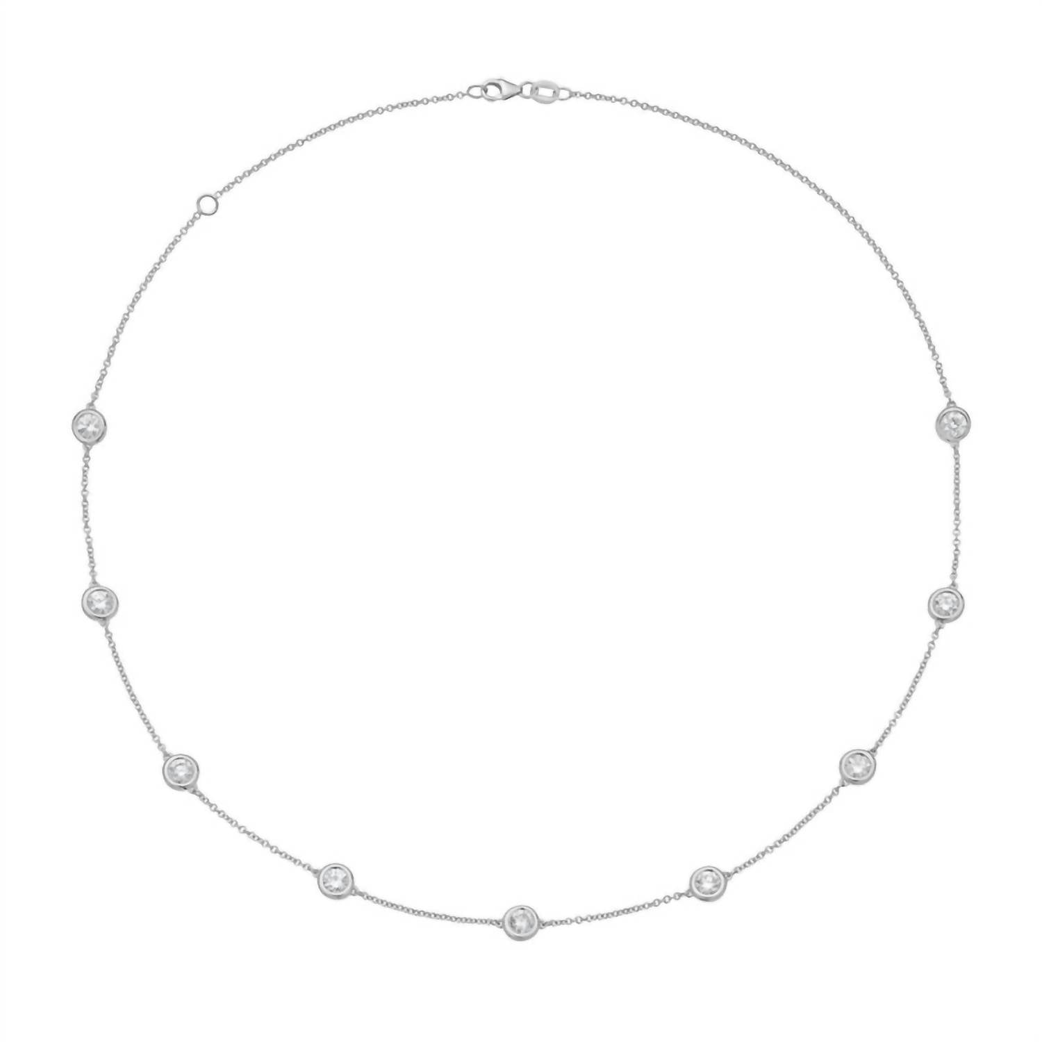The perfect stand-out necklace that complements even the most basic t-shirt. The Diana M Jewels 2.25 Cts Lab Grown Diamond By The Yard Necklace exudes elegance with its 14kt white gold setting. Crafted with fine jewelry standards, this necklace features round brilliant, lab-grown diamonds totaling 2.25 carats in a classic bezel setting. The white, colorless gemstones are elegantly laid out along the necklace, secured with a lobster clasp. Perfect for those celebrating April birthdays or anyone who appreciates exquisite craftsmanship.