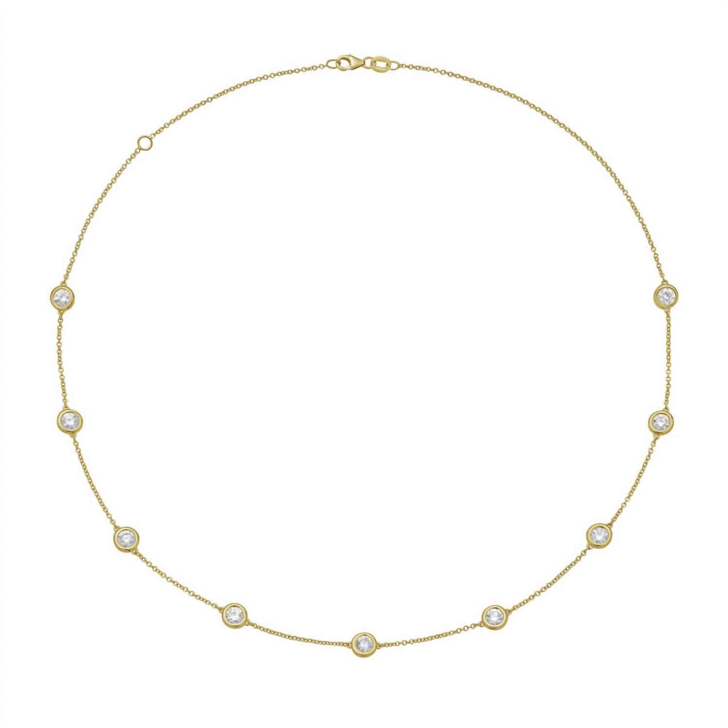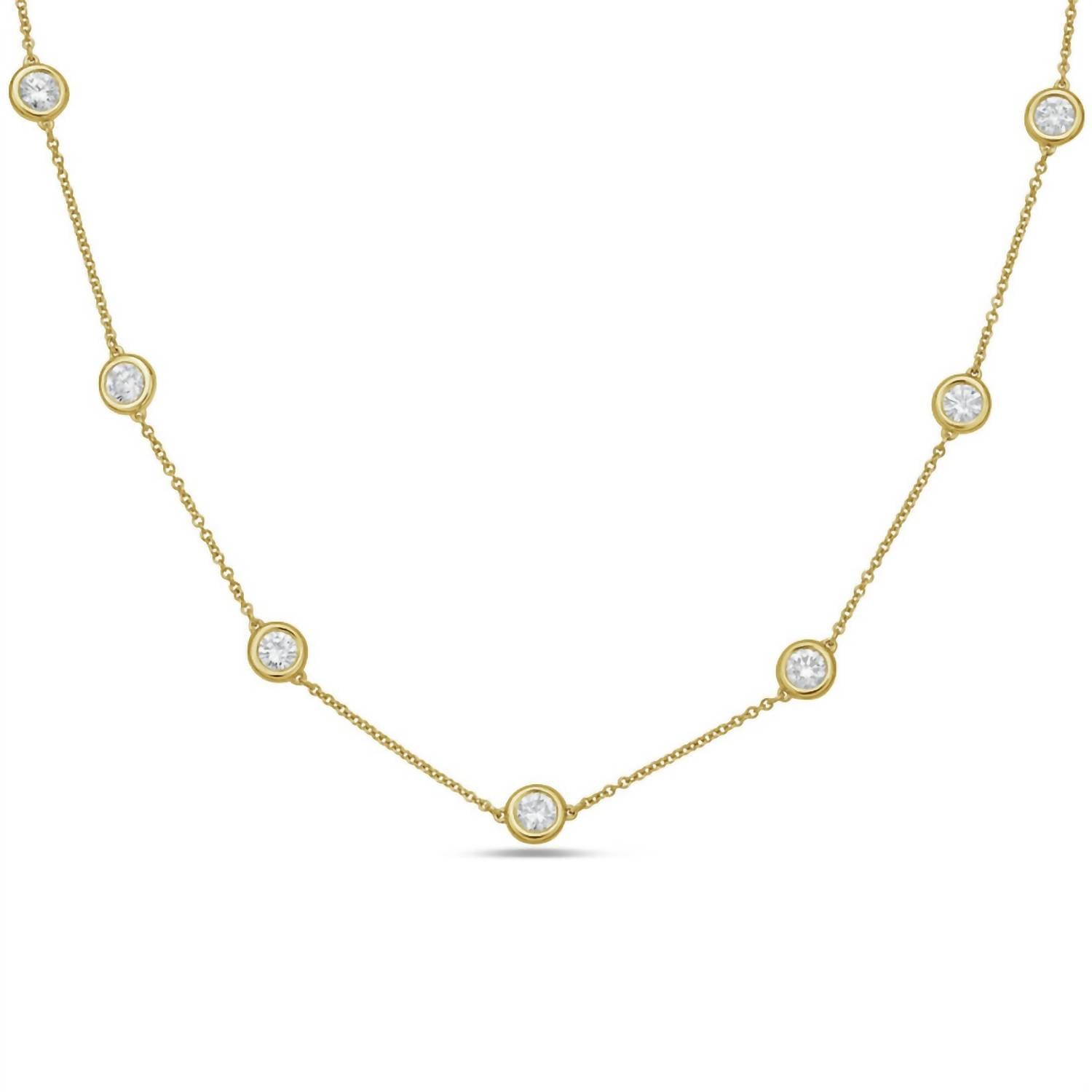 Both understated and impactful, you'll be reaching for this one-of-a-kind necklace season after season. Diana M Jewels presents the stunning 5.00 Cts Lab Grown Diamond By The Yard Necklace, crafted in luxurious 14kt yellow gold. This fine jewelry piece features white, colorless lab-grown diamonds with a total carat weight of 5.00, each exquisitely shaped in a round brilliant cut and elegantly set in bezel settings. It secures with a lobster clasp for effortless wear. Perfectly embodies the birthstone of April, making it an ideal gift for that special occasion.