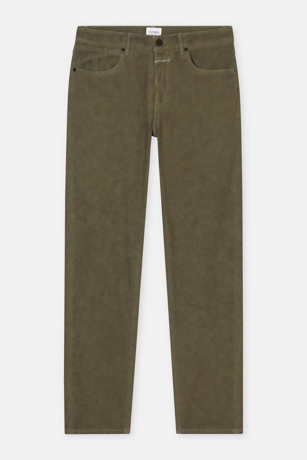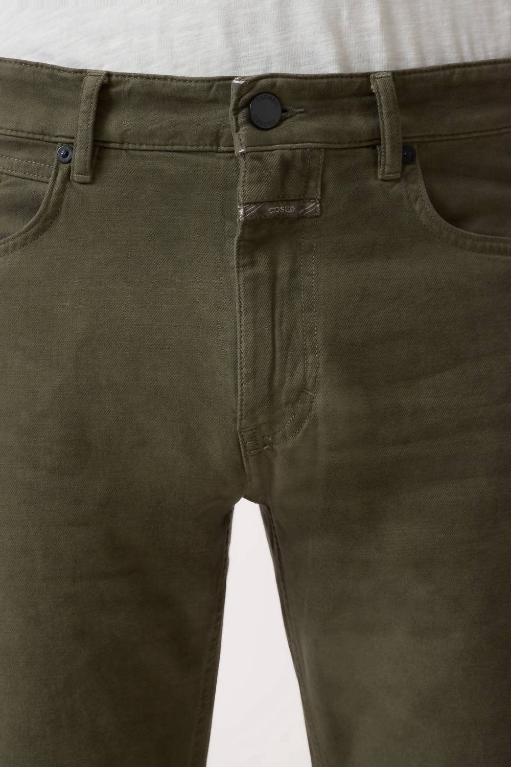 Introducing the Men's Cooper True Jeans by CLOSED, a classic piece crafted in Forest Green for timeless style. Made from 100% regenerative cotton, these jeans are lightweight, featuring a regular fit with a mid-rise waist and straight leg. Designed with a traditional 5-pocket style, they boast a two-tone garment-dye finish and workwear-inspired Batavia weave. Originating from Italy, these jeans feature a practical zip closure, ensuring a fit that only gets better with each wear.