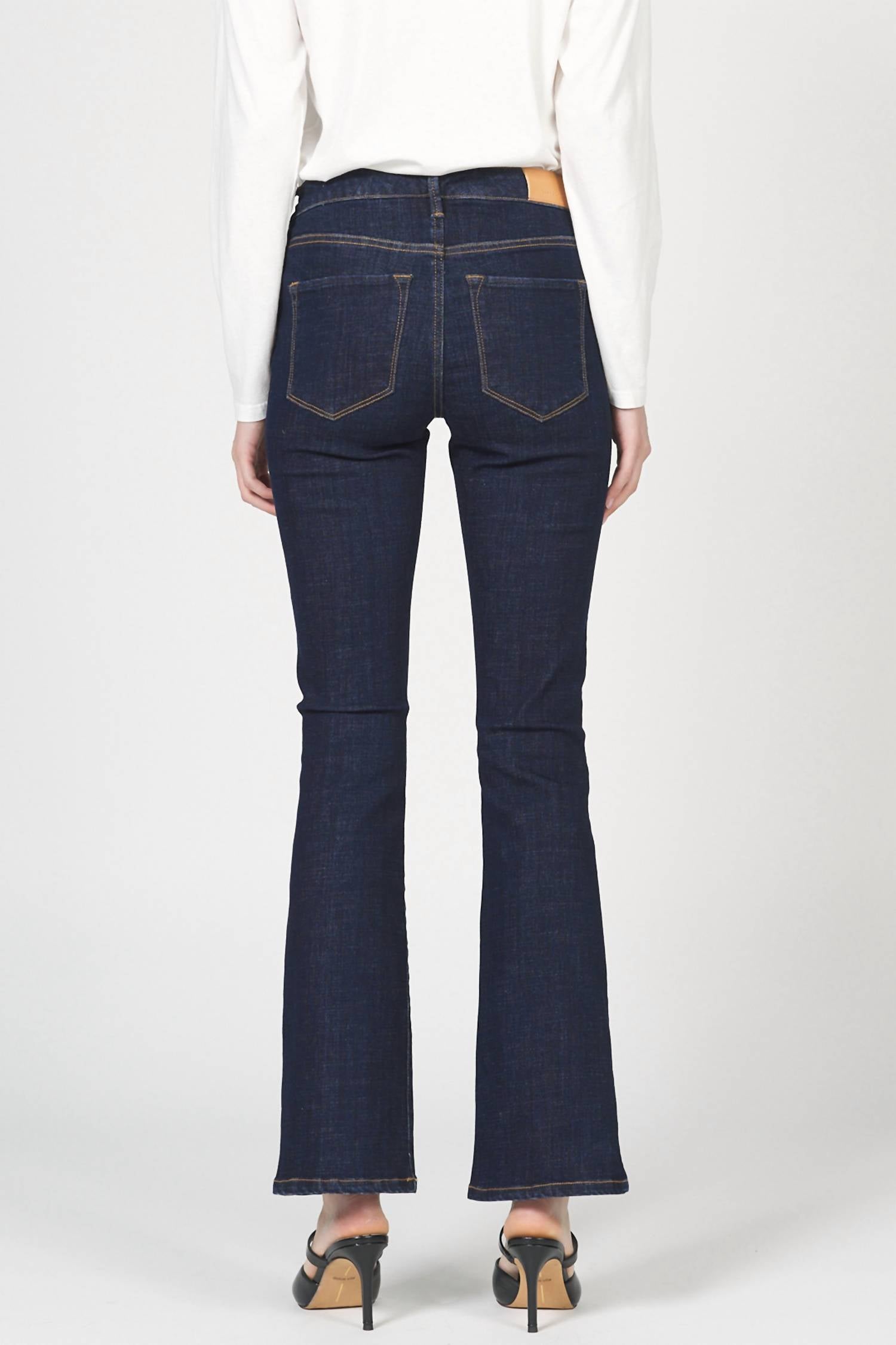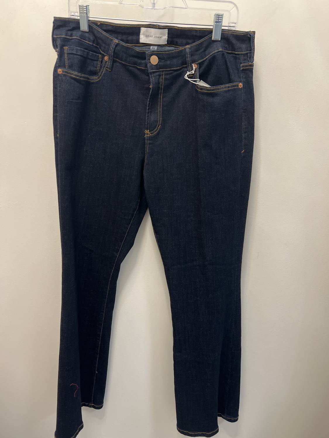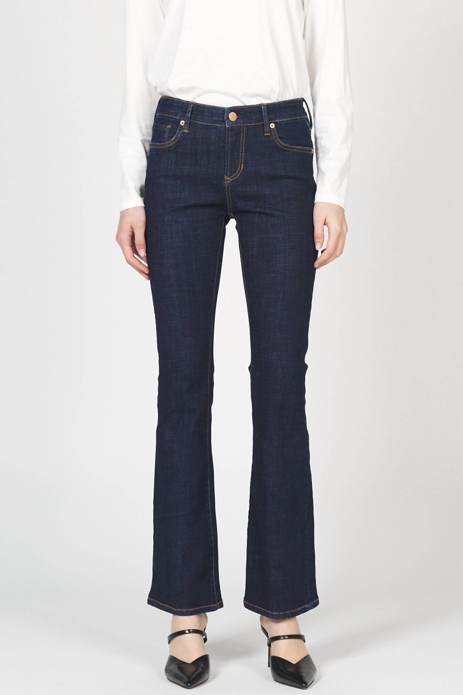 A boot-cut jean that not only looks good on, you'll be comfortable in them all day. Elevate your denim collection with the Jaxtyn Bootcut Jeans by DEAR JOHN DENIM, offered in a sophisticated Anchor hue. These women's jeans feature a mid-rise waist and a sleek dark wash, coupled with a trendy clean hem. The composition combines 63% Cotton, 31% Polyester, 4% Rayon, and 2% Spandex, ensuring a comfortable yet stylish fit. Imported with a zip fly and button closure, they boast a 9.5" front rise, 19" leg opening, and 31" inseam for size 27. Care instructions include machine wash cold and tumble dry low, making them practical for everyday wear.