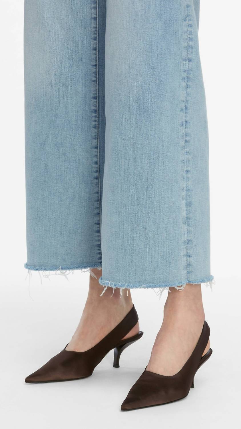 The perfect cropped jean for those transitional seasons. Meet the Le Palazzo Crop by FRAME in a stylish "Tribute" color, designed with a contemporary streetwear edge. These high-rise, wide-leg cropped jeans feature a relaxed fit and are crafted from a thoughtful blend of 70% regenerative cotton, 17% polyester, 11% lyocell, and 2% elastane. Closure: Button closure. Care: Machine wash cold, lay flat to dry. Product Measurements for size 25: Rise 11", Inseam 27.5", Leg Opening 28". The model is 5'7.5" with a 34" bust, 26" waist, and 37" hips, wearing a size 25.