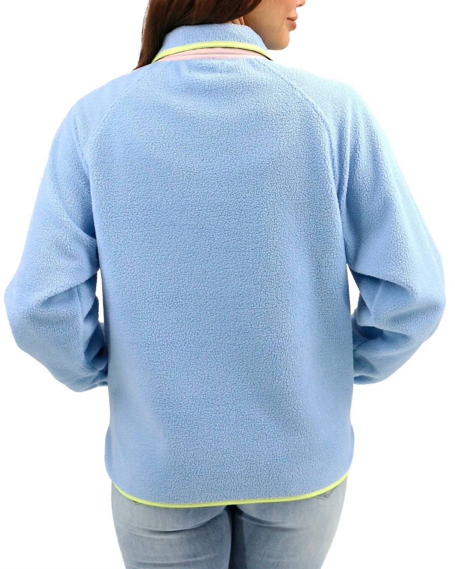 Cute, casual, and comfortable. This jacket is a must have. Introducing the Colorblock Fleece Jacket by Grace and Lace, a chic blend of style and practicality that elevates your casual wardrobe. This long-sleeve jacket in pastel blue and blush features a trendy colorblock design with contrasting raglan sleeves and collar. Made for convenience and comfort, it includes functional snap-up front closure and secure zip-up pockets. Composition unknown, but care is easy with machine washability, making it a perfect choice for vacation-ready ensembles.
