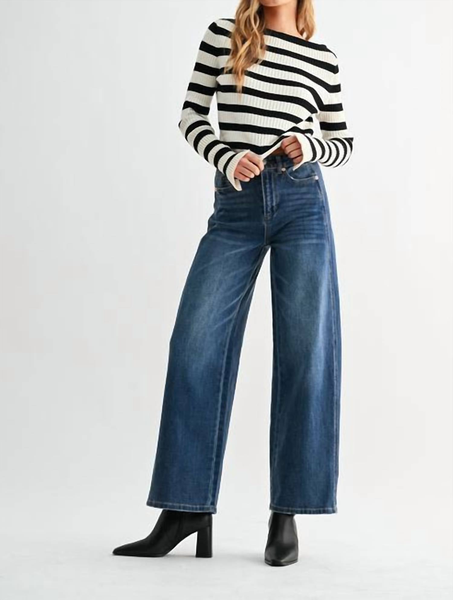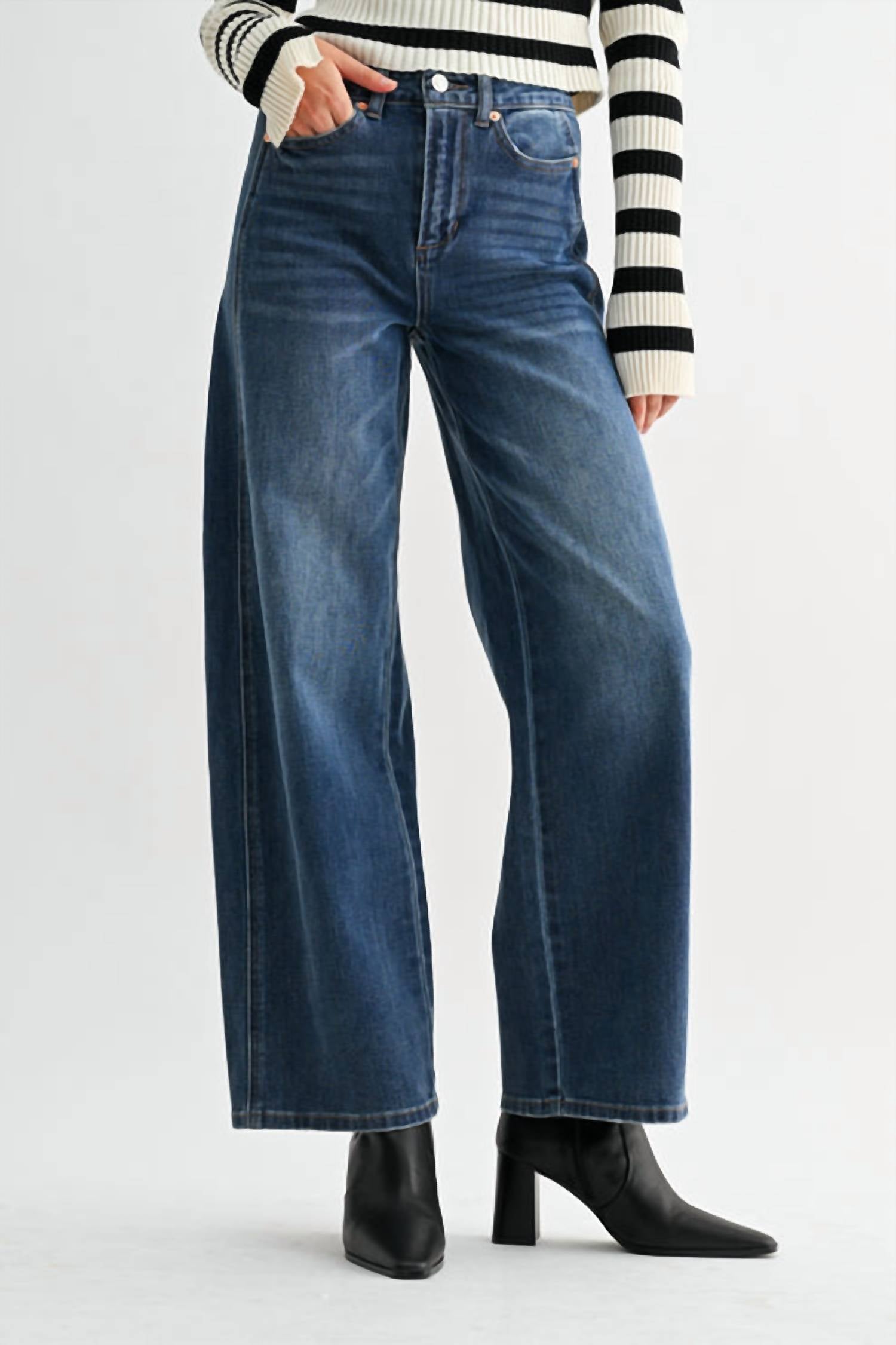High-waist is here to stay and we especially love this style. Experience the chic comfort of Jemina's High Rise Balloon Pants in striking indigo. These women's pants feature a high-rise waist and relaxed barrel-leg silhouette that combine modern style with effortless wearability. Crafted from a 95% cotton and 5% spandex blend, they offer excellent stretch and shape retention, allowing you to move with ease. With a textured pattern and button closure, they boast a 29-inch inseam for a flattering fit. Care is simple with a machine wash, ensuring these pants become your go-to denim staple for any spring occasion or holiday party.