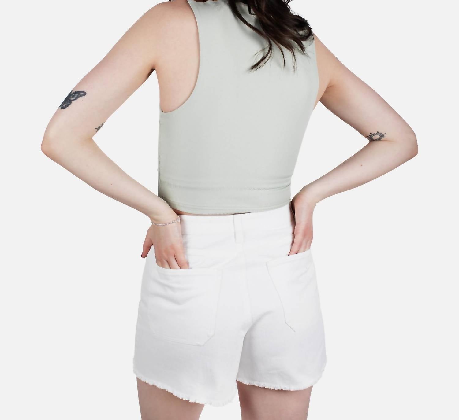 This classic tank top is perfect for layering and cute enough to wear on its own. Discover the Mystic Rib Tank by Jetty, designed for the minimalist who appreciates modern elegance. This sleeveless tank in sage green is made from high-quality polyester, offering both comfort and style. Designed with a scoop neckline and a solid pattern, it effortlessly pairs with your vacation wardrobe. With its convenient pull-on closure, this tank is a perfect addition to your warm-weather collection.