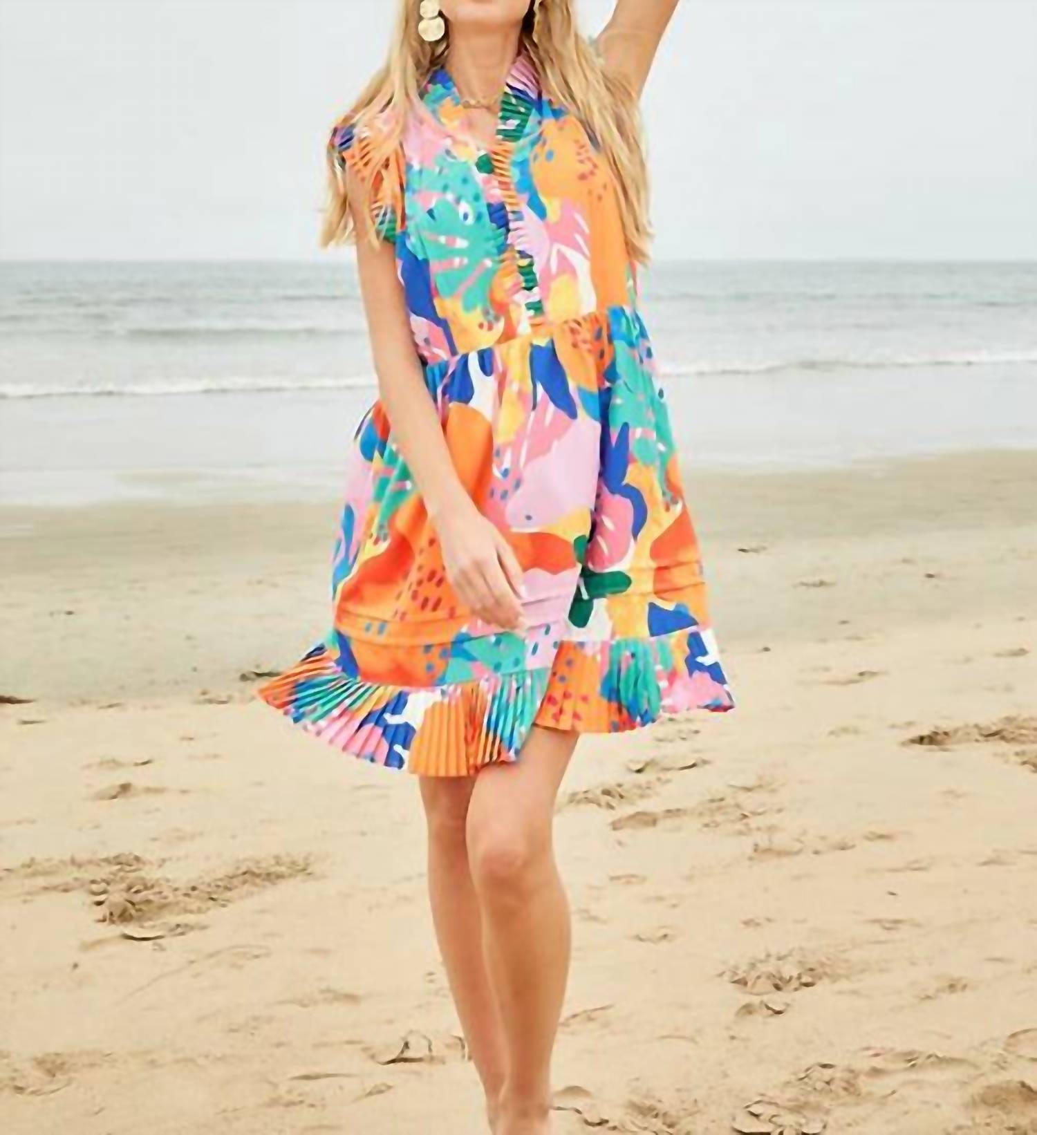 The kind of easy and flattering dress you'll be reaching for all season long. Get ready to flutter with joy in our Mini Pleated Dress! With a v neck and flutter sleeveless design, this knee-length dress is perfect for any occasion. Bring out your inner Fantasia with this playful and stylish dress!