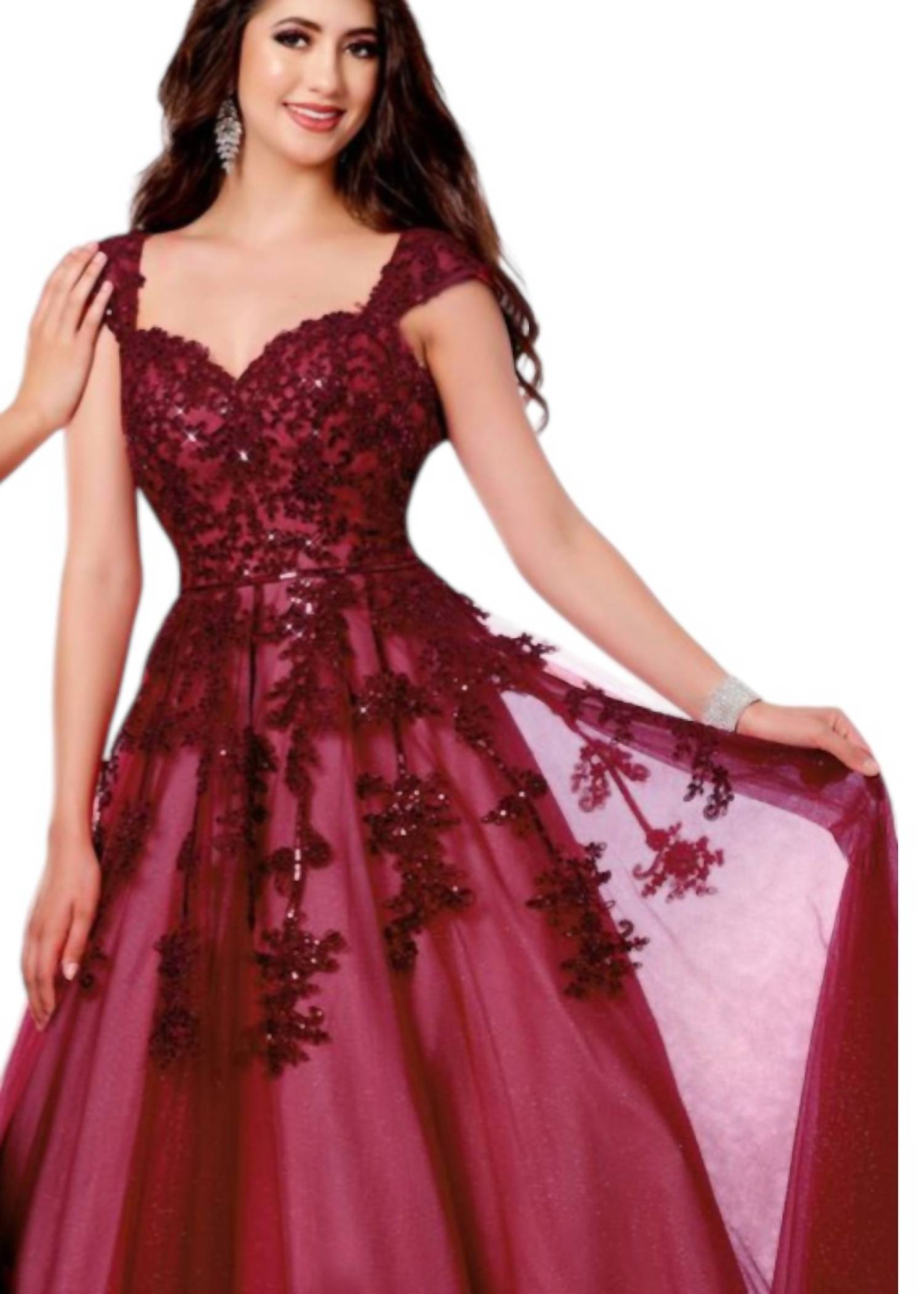 Just add a cute little clutch and a matching heel for the perfect event look. Introducing the Embroidered Glitter Tulle Dress from Karishma Creations, a stunning choice for prom. This sleeveless dress in a captivating burgundy/nude hue features a sweetheart neckline and a fit and flare silhouette, perfect for making an entrance. Crafted from embroidered glitter tulle, it boasts a textured pattern that exudes quiet luxury. Closure: Zip closure.