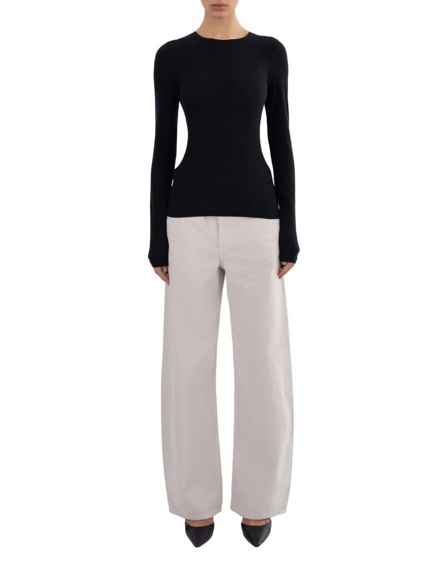 A long sleeve top you can wear with denim, skirts, well... just about anything! Introducing the Medora Long Sleeve Top by LAMARQUE, a sophisticated addition to your wardrobe in a versatile taupe shade. This top features long sleeves and a classic crewneck, offering a sleek, close fit perfect for layering or minimalist styling. Made from lightweight wool, it boasts a luxurious, soft feel. Closure: Pull on. Care: Dry clean only.