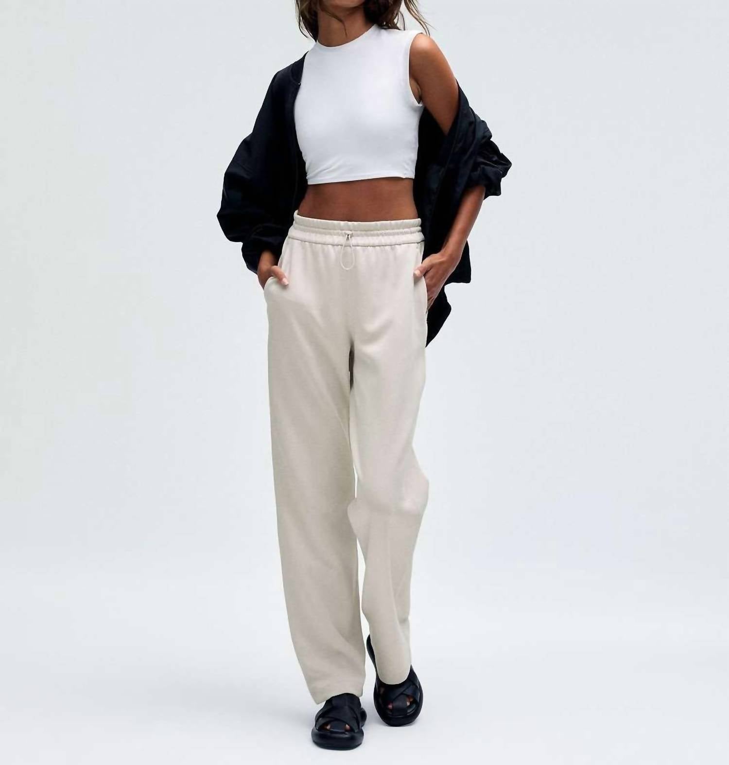 A perfectly tailored straight leg that you'll want in every color! Introducing the Softstreme High-rise Pant by lululemon, a staple for any minimalist wardrobe in a sophisticated Bone shade. These relaxed fit pants are made from 53% recycled polyester, 38% modal, and 9% elastane, offering comfort and sustainability. With a straight leg style, high-rise waist, and a convenient pull-on closure, they feature a 31-inch inseam and handy pockets. Care is a breeze with machine wash and tumble dry instructions, making them perfect for effortless vacation dressing.