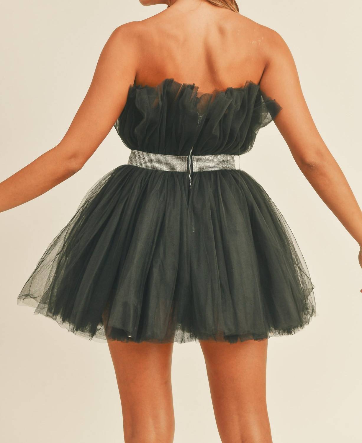 The pefect long sleeve dress for those cooler months. Unveiling the MABLE Belted Tutu Mini Dress in black, a perfect blend of 90s fashion and modern elegance. This strapless dress features layers of textured tulle material with a sparkling rhinestone waistband that accentuates the silhouette, making it ideal for cocktail parties. Crafted from self and lining both 100% polyester, this imported piece ensures a comfortable fit and a glamorous look. Closure is achieved with a zip, complementing its flawless design.