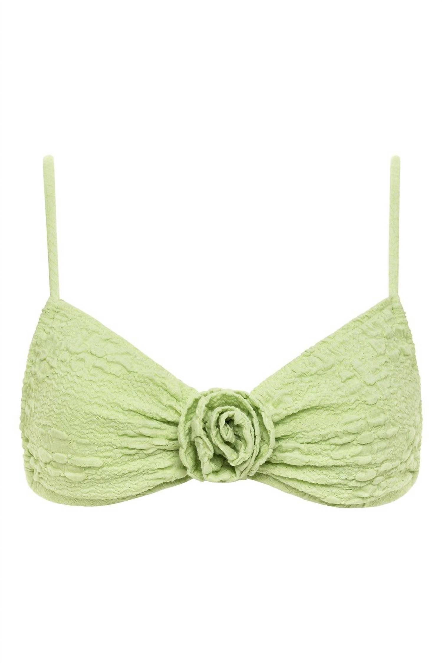 Dream of your next beach getaway in this cute little number. Pair with strappy sandals, a floppy hat, and an oversized tote to complete the perfect vacation look. Embrace a chic beach look with the Devin Rosa Bikini Top by Montce, featuring adjustable shoulder straps for a perfect fit. Made from a luxurious organic cotton polyester spandex blend, this triangle swim top offers medium coverage and is lined with a fabric imported from Turkey. The tie-back closure adds a simple yet secure touch, complemented by a fixed fabric flower at the center front for a touch of elegance. Care instructions are straightforward: machine wash and line dry to maintain its Avo Floral texture. Ideal for a minimalist aesthetic, it’s perfect for summer beach days.