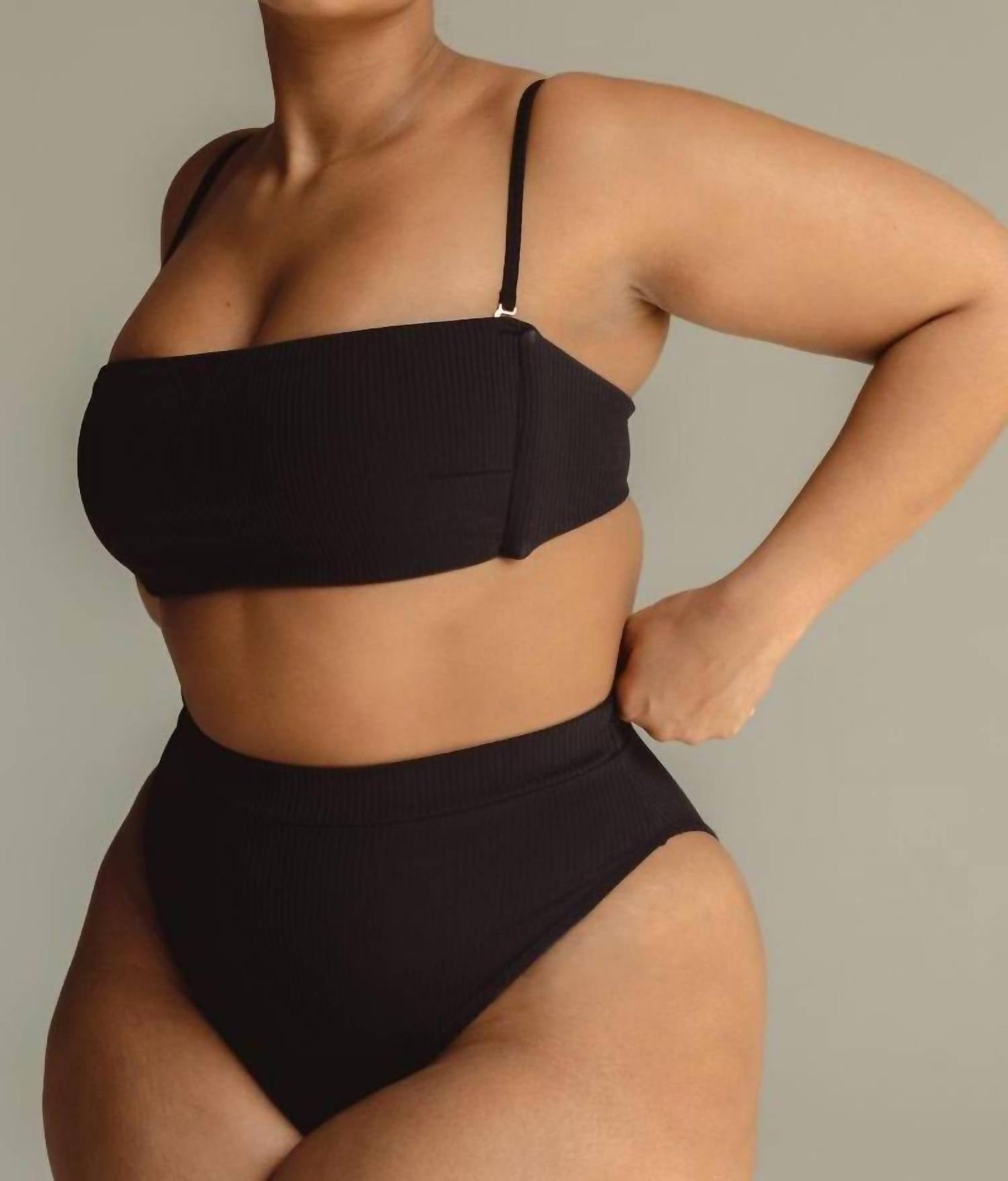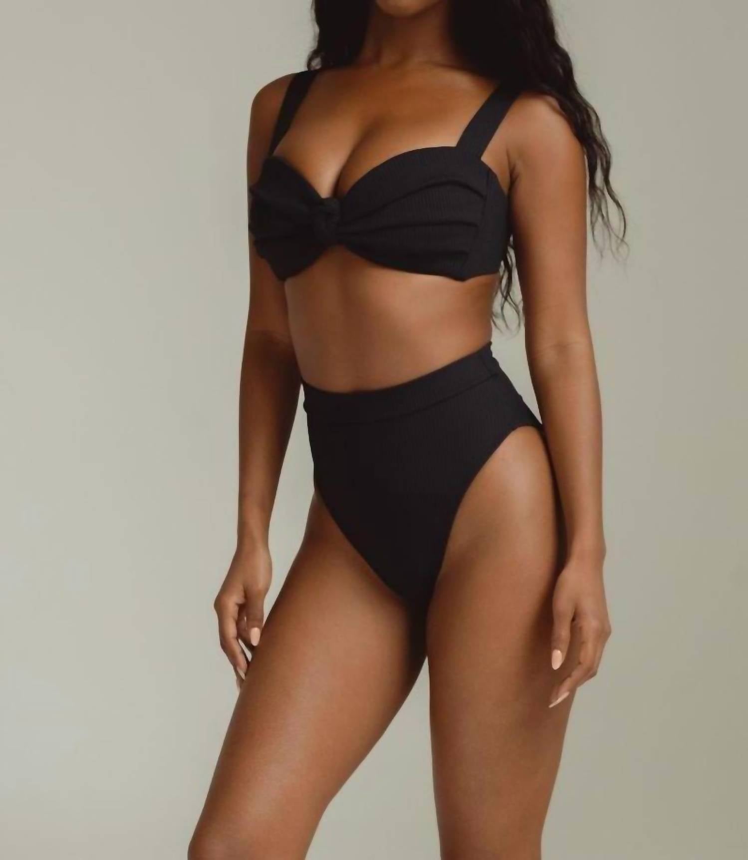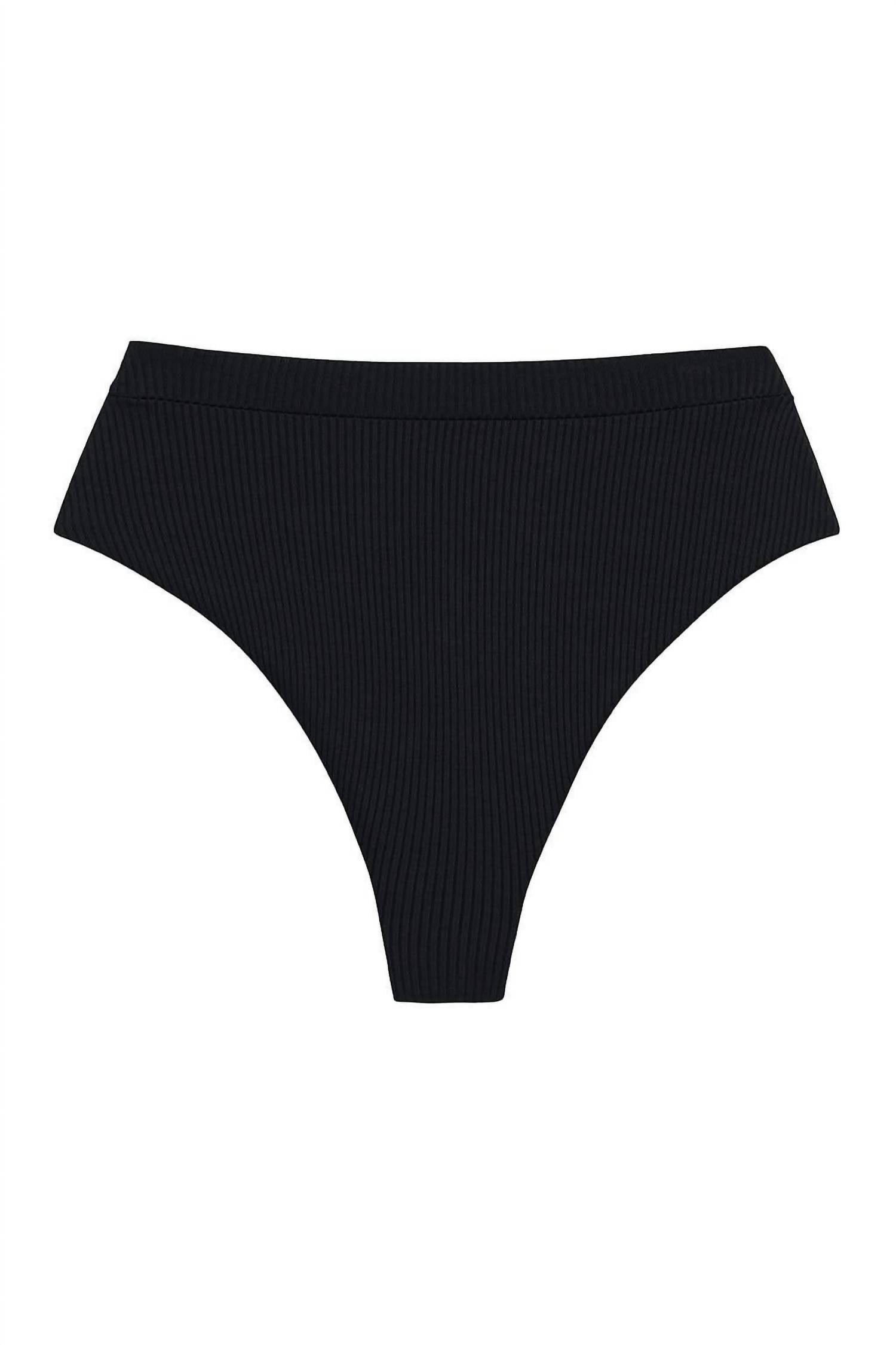 This cute and flattering swimsuit is perfect for making a splash at the pool, lounging on sun-kissed beaches, and staying stylish throughout the upcoming summer season. Experience the perfect blend of style and comfort with the Paulina Bikini Bottom by Montce. Designed in a sleek True Black, this high-waisted swim bottom offers full front and moderate back coverage, complete with a high-leg French cut to elongate the leg and a ruched back to accentuate your shape. Made from a buttery soft ribbed nylon/spandex blend, the fabric is imported from Brazil and hugs the body beautifully. Care for this minimalist bikini by hand washing it to maintain its stretch and quality, making it a standout option for your next beach day or summer outing.