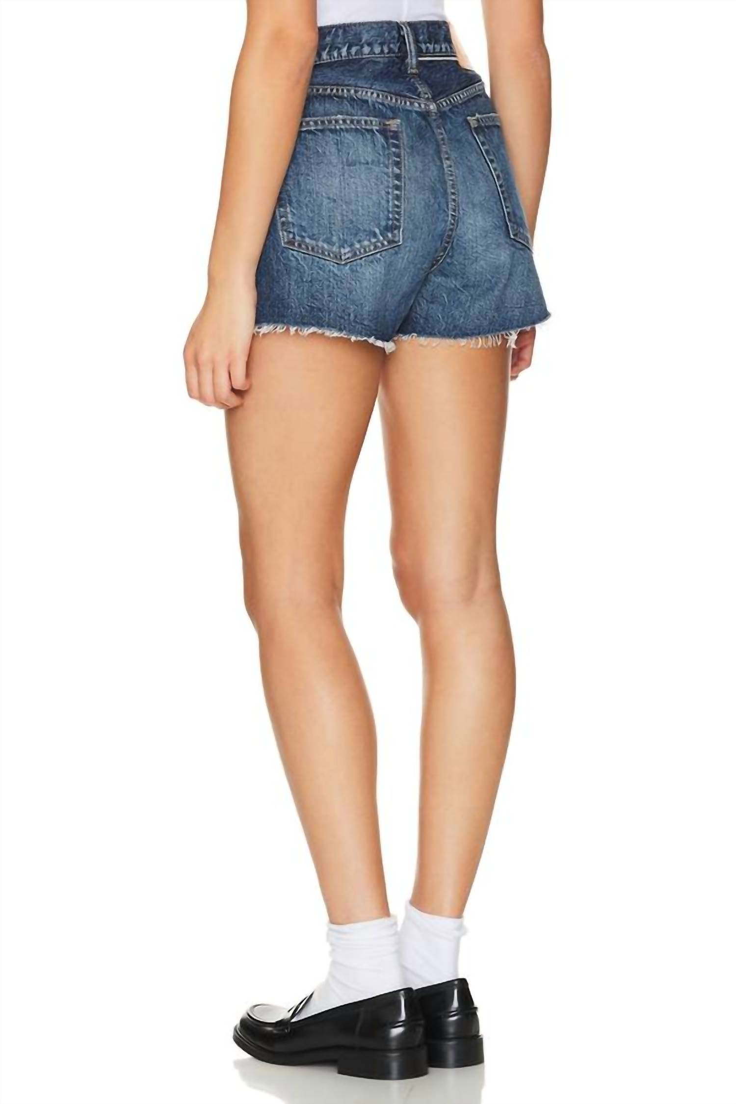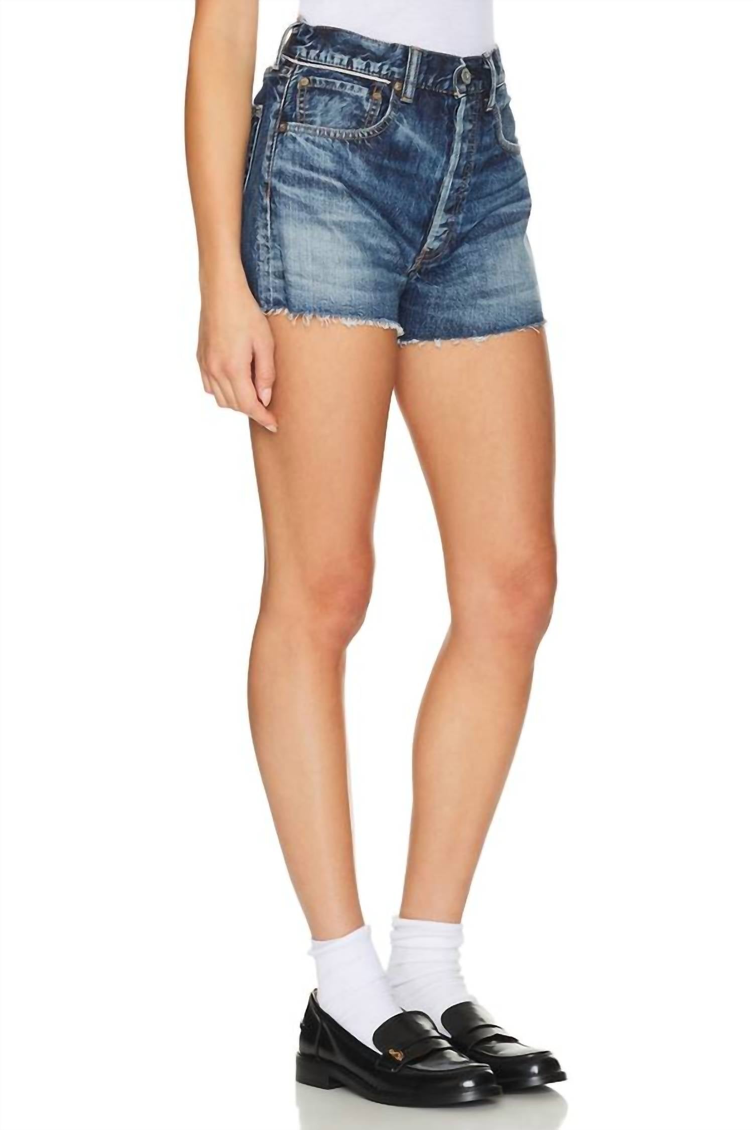 Fit to perfection, we love these high-waist shorts and you will too. Discover the Ford Jean Shorts by Moussy, crafted in a rich dark blue denim for a timeless look. Classic 5-pocket design, button fly closure and a frayed, raw-edge hem for a modern twist. Made in Japan. 100% cotton machine wash. Style # 540HSC11-1120. Measurements: Inseam: 3.5" across all sizes Rise: ranges from 11" to 12" depending on size