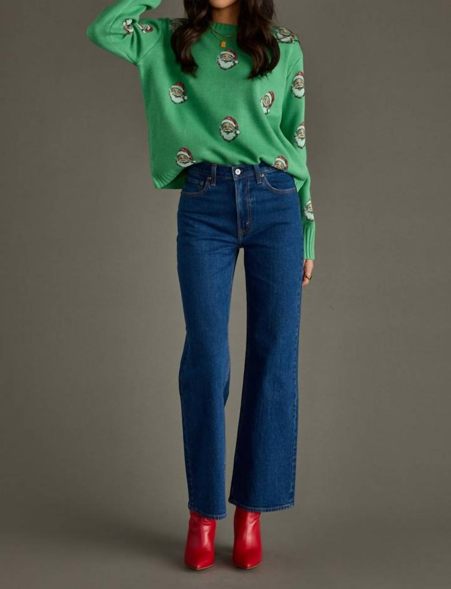 The ultimate go-to sweater, expertly crafted to provide the perfect combination of warmth and style. Its classic design and soft fabric make it a must-have addition to your wardrobe. Introducing the Santa Crewneck Sweater by Panache Apparel, a festive essential for the holiday season. This green knit sweater, crafted from 100% Acrylic, features a delightful Santa face design on both the front and back. The long sleeves and relaxed fit offer comfort and warmth, perfect for maximalist winter style. Closure: Pull on. Care: Hand wash and lay flat to dry.