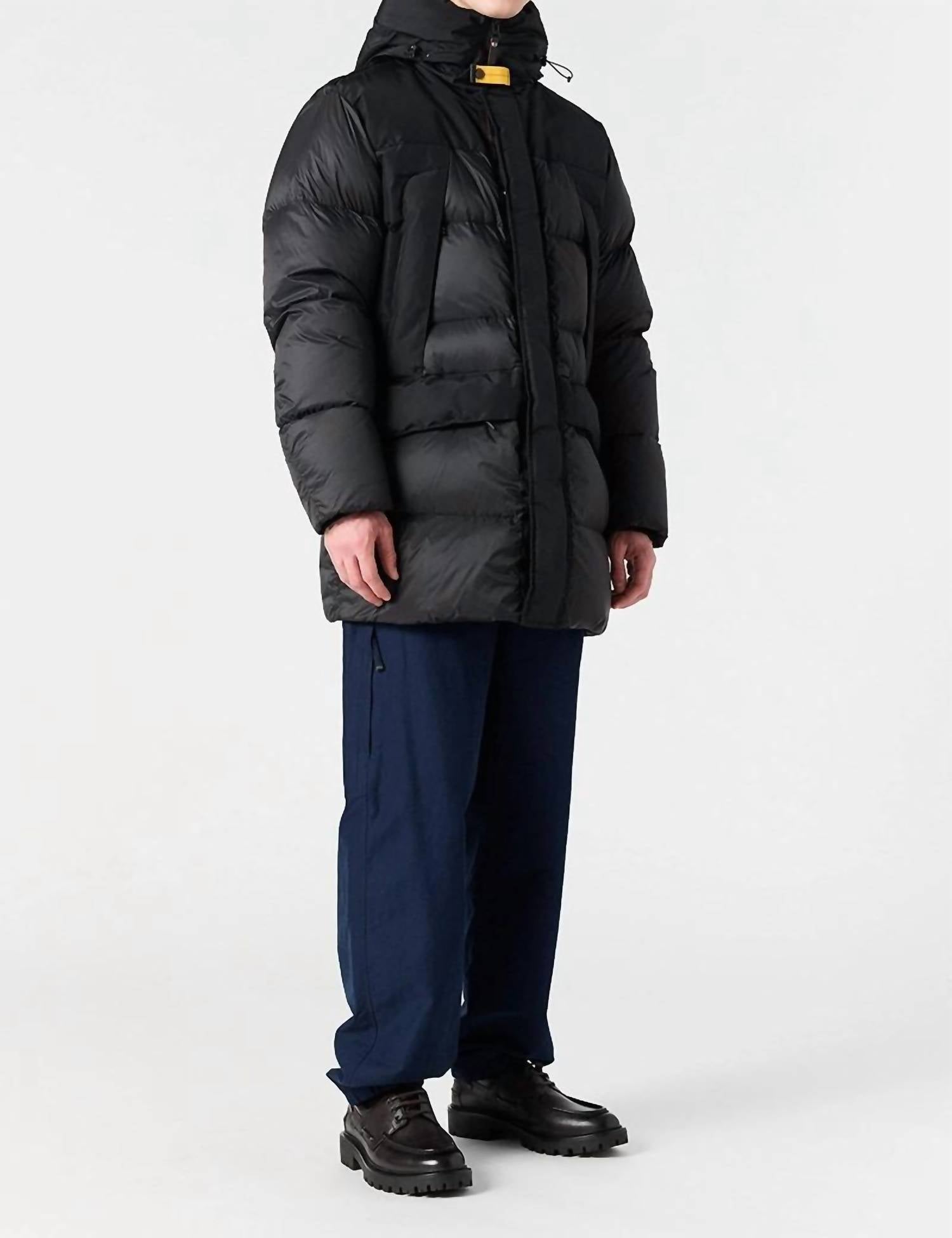 Cooler temps call for layering and we love this adorable sweatshirt for all the obvious reasons. Introducing the Shedir Down Jacket by PARAJUMPERS, expertly crafted for winter escapades with essential functionality. This solid black jacket features long sleeves and a hooded neckline, made from 100% polyamide with Cordura ripstop nylon for superior water repellency. It includes a two-way zip front closure and adjustable hem and hood with drawstrings, offering customizable comfort and four external zip pockets plus two internal ones for practicality. The jacket is filled with a cozy blend of 90% duck down and 10% feathers. Care instructions: Machine wash and lay flat to dry.