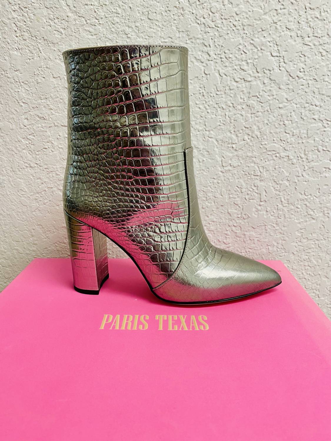 Paris Texas - Women's Metallic Croco Block Heel Ankle Boot