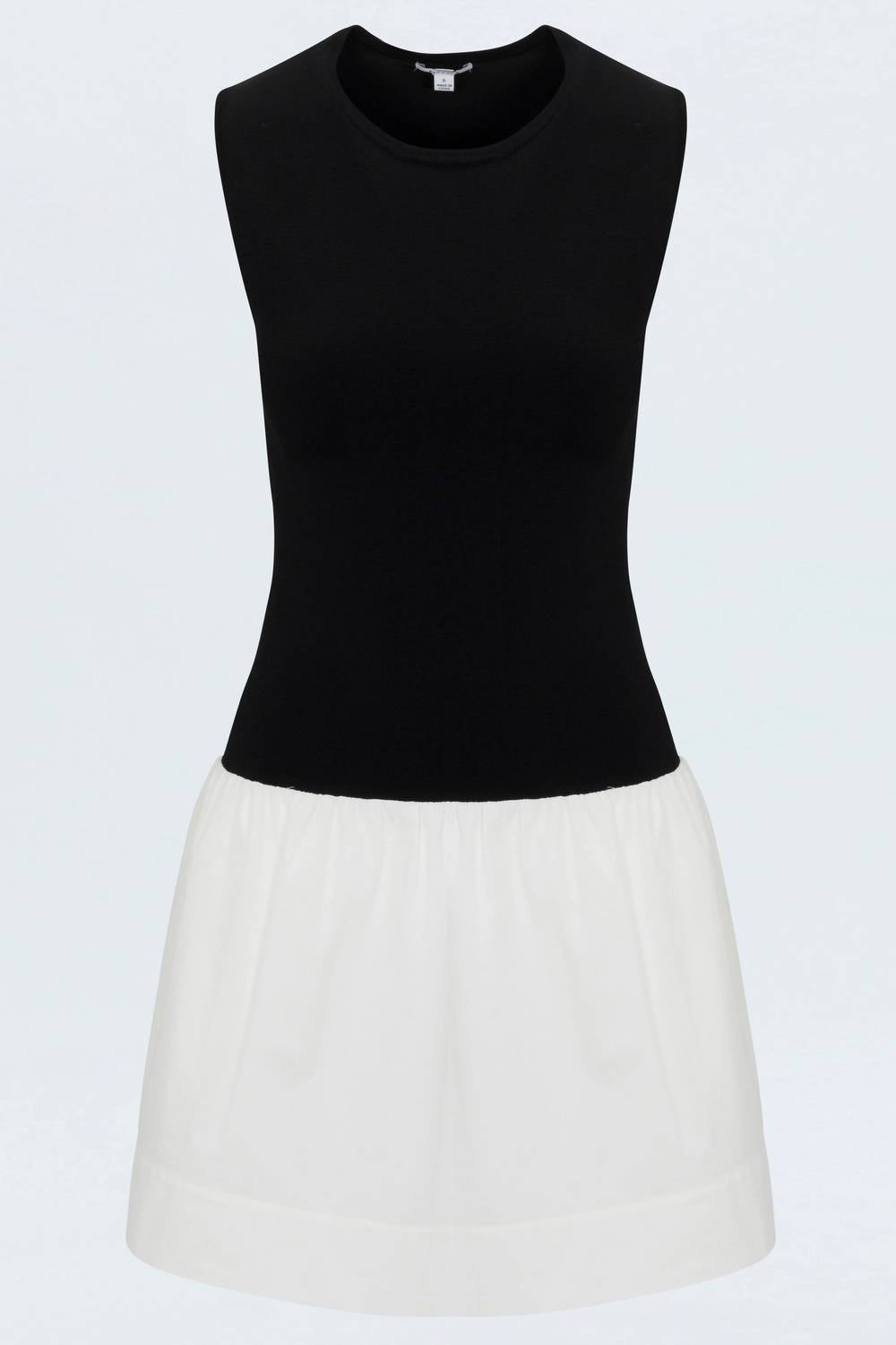 A midi dress so versatile, your options for wearing it are endless. Introducing the Adrienne Drop Waist Dress by PISTOLA, a striking piece in noir and le blanc that offers both edge and elegance. This sleeveless midi dress combines 97% cotton and 3% spandex, featuring a sleek knit top and a crisp poplin bubble skirt, complete with hidden pockets for added convenience. Originating from an import, it effortlessly pulls on, and should be hand washed and laid flat to dry for best care. Measuring 34.5" in length, it's perfect for a sophisticated dinner party or a minimalist spring wardrobe.