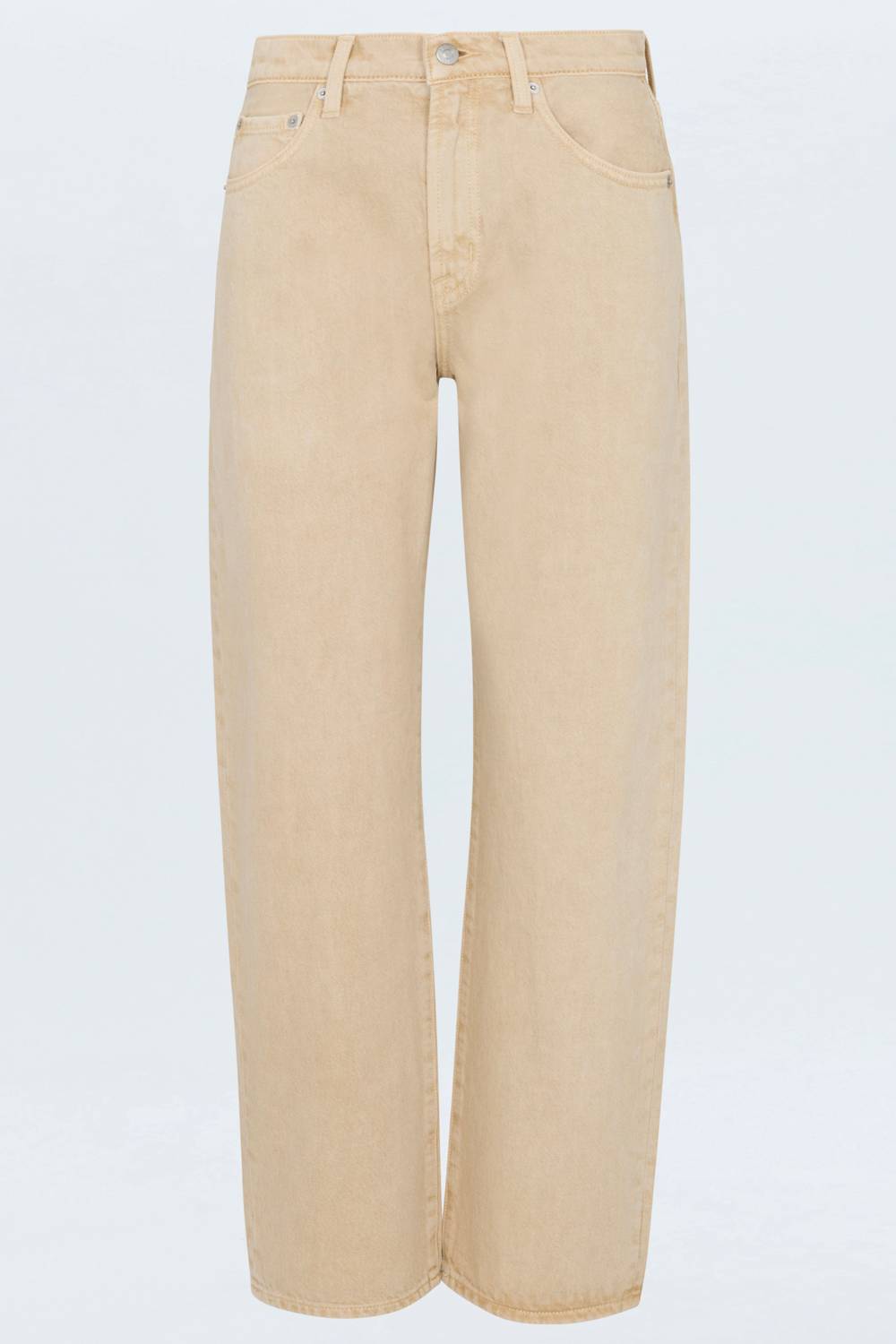 A straightleg pant that workes season after season. Dress these up with your favorite blouse or keep it casual with your go-to tee. Introducing the Lexi Mid Rise Bowed Straight Pants by PISTOLA, a must-have in the minimalist wardrobe. These solid Sand Dollar jeans feature a flattering mid-rise with a gently bowed straight leg, creating a modern twist on a classic style. Made from 100% cotton with a button closure, the design includes pockets and a cropped ankle length for showcasing your favorite shoes. Care instructions: Hand wash and lay flat to dry. Rise: 10”, Leg Opening: 17 1/2”, Inseam: 29".