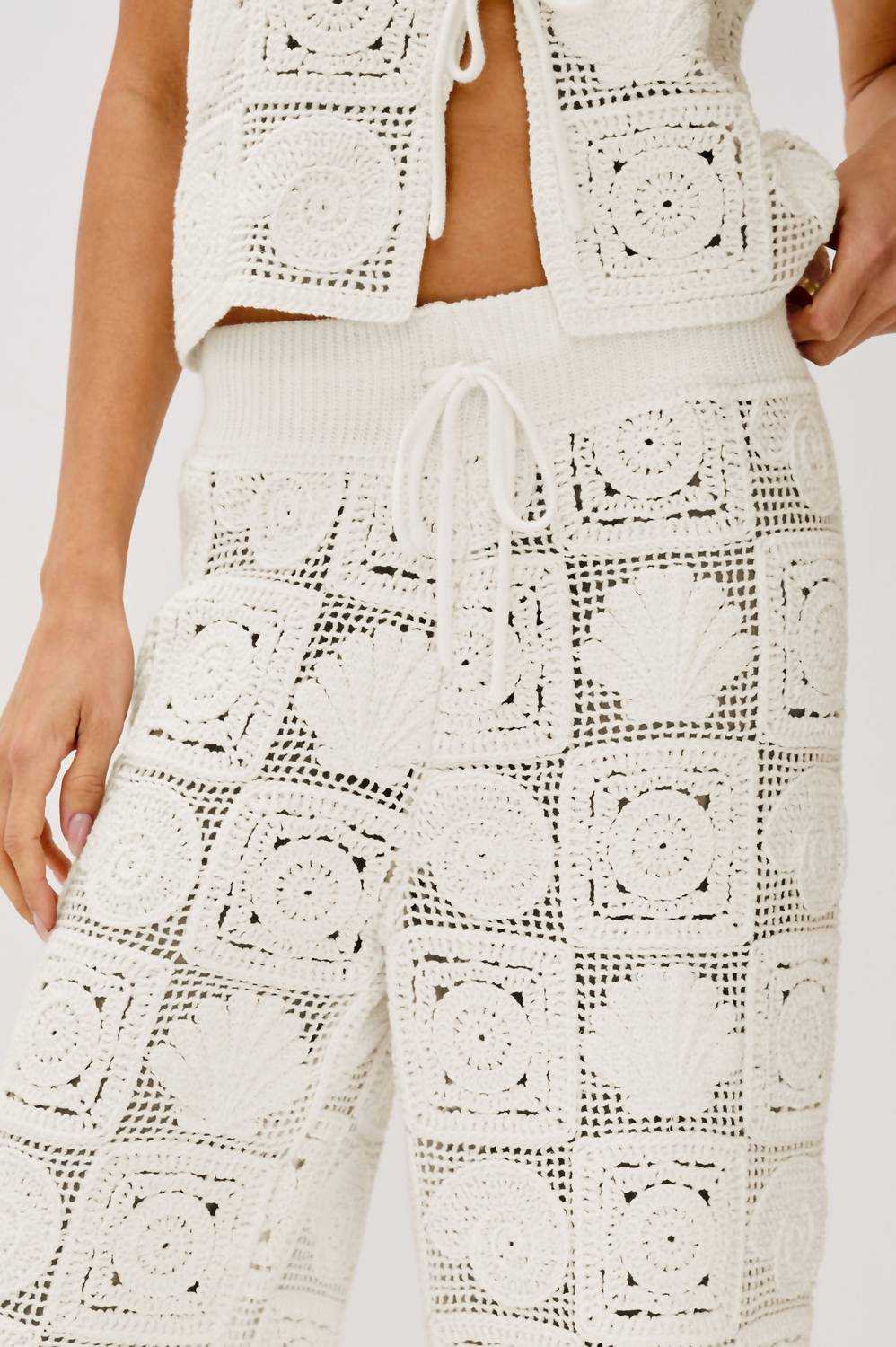 This straightleg pant is both stylish and comfortable. Did we mention the fit is perfection? Elevate your summer wardrobe with the Maja Pant by Rails, a boho chic essential in a unique Open-Stitch Shell Motif Crochet design. These high-waisted, wide-leg pants feature a shirred drawstring waist and a short lining for added comfort. Made from a 60% Cotton and 40% Acrylic blend, they provide a relaxed fit with a 27.5" inseam and 11.75" front rise, perfect for warm beach days or vacation outings. Care instructions recommend hand washing or dry cleaning, with the option to cool iron; avoid bleaching and tumble drying for best results.