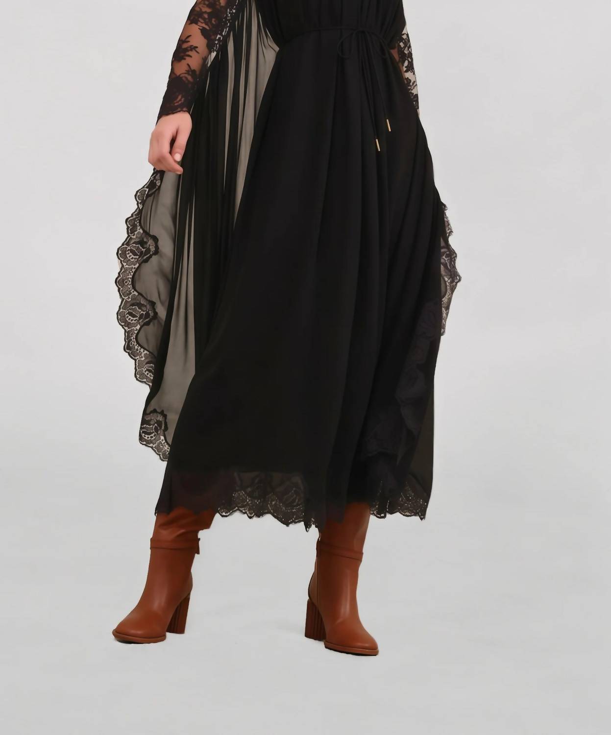 Relvoux - Women's Clea Semi Sheer Lace Midi Dress