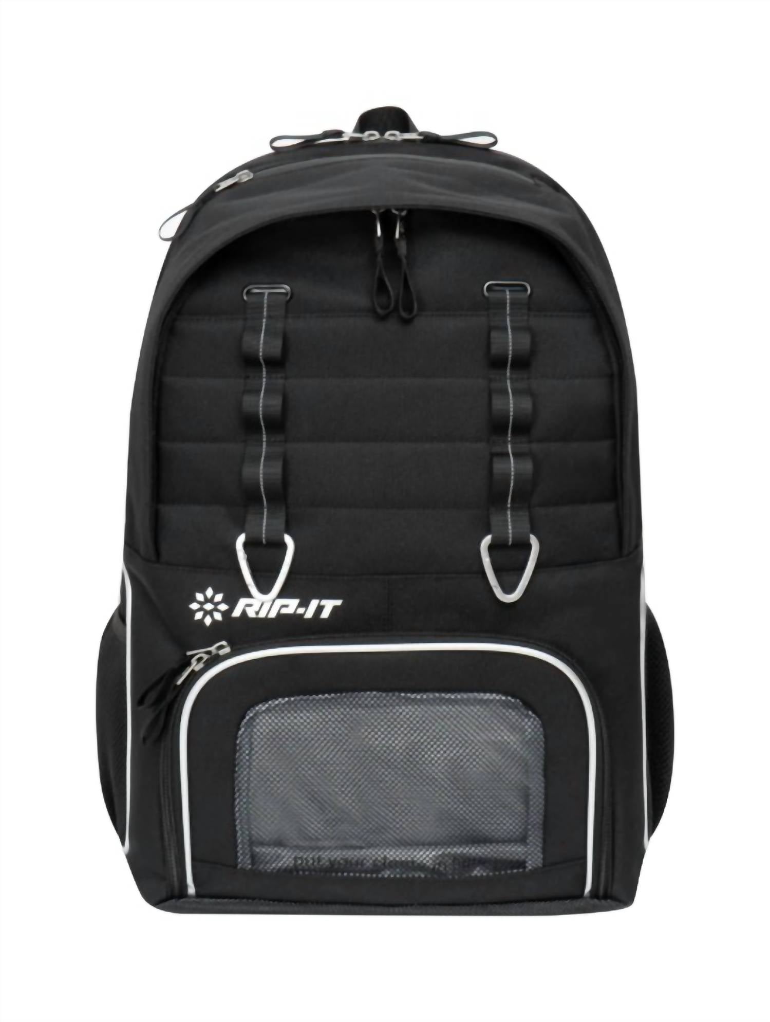 The perfect size backpack that fits everything you need! Introducing the Rip-It Women's Essentials Volleyball Backpack, a must-have for every athlete. Expertly co-created with HER, this backpack boasts ventilated compartments that keep shoes and knee pads fresh. It features convenient front carabiners for carrying keychains or hanging your cinched volleyball bag. With dimensions of 19 inches in height, 13 inches in width, and 8 inches in depth, it weighs 1.83 pounds and is available in classic black.