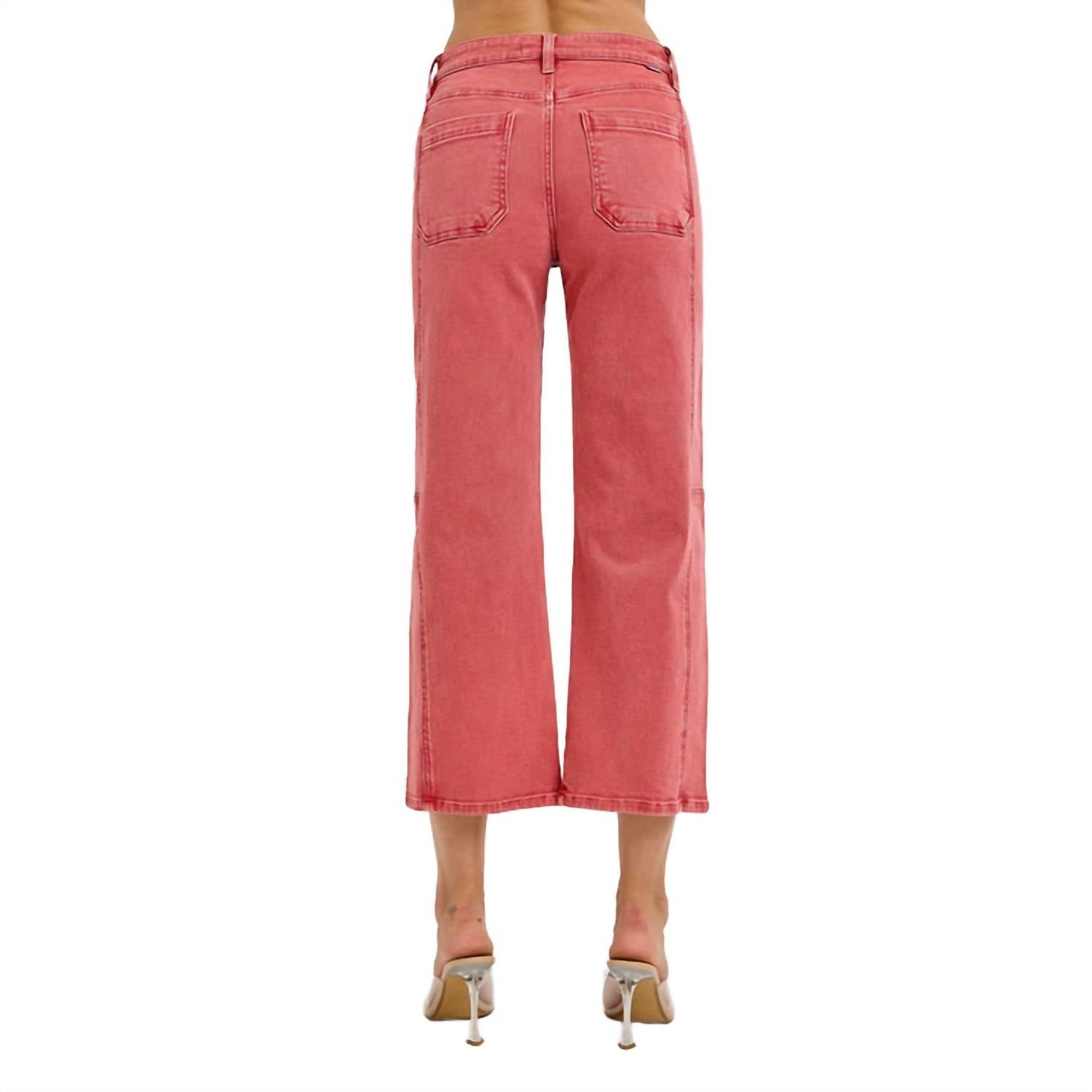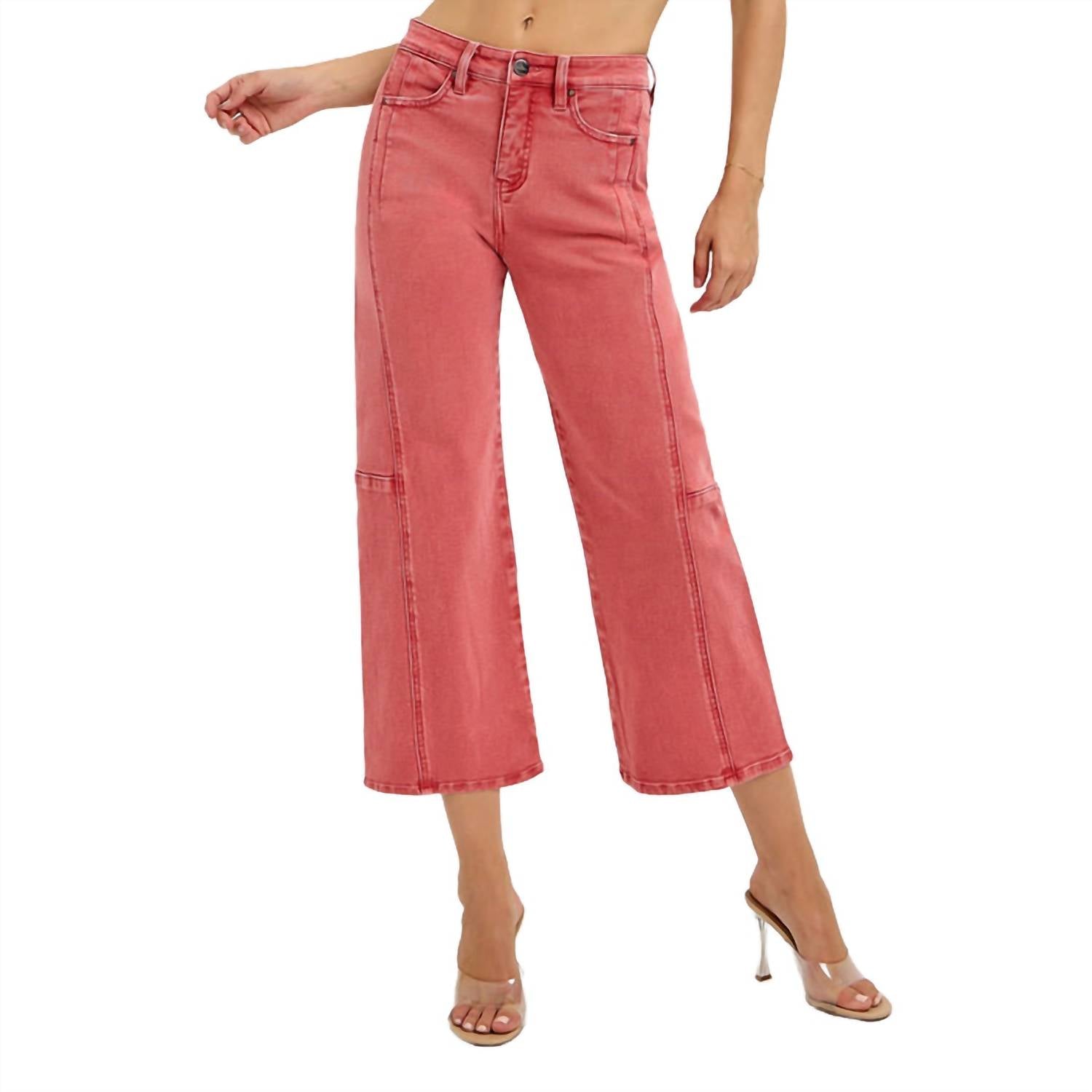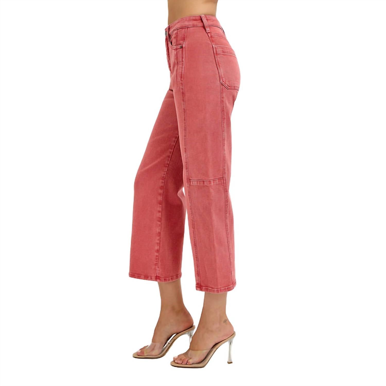 Pair these wide leg jeans with mules, slides or your favorite strappy sandals. Introducing the Risen Sunset High Rise Wide Leg Barrel Jeans in a vibrant Strawberry hue, perfect for adding a pop of color to your wardrobe. Made from a comfortable 97% Cotton and 3% Spandex blend, these jeans feature a relaxed fit with a stylish wide leg and high-rise waist. With a button closure, a 10.75" rise, and a 25.5" inseam, they offer both style and comfort for everyday wear. Easily maintained with machine wash and tumble dry care instructions, these jeans are your go-to for chic minimalist style.