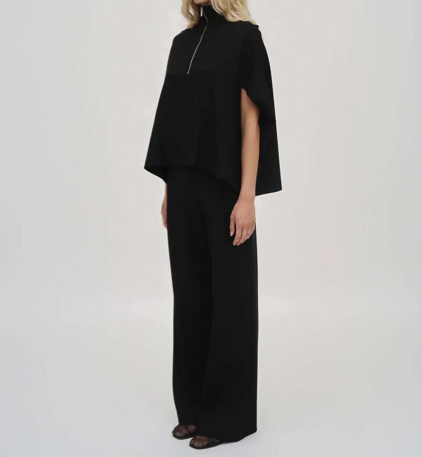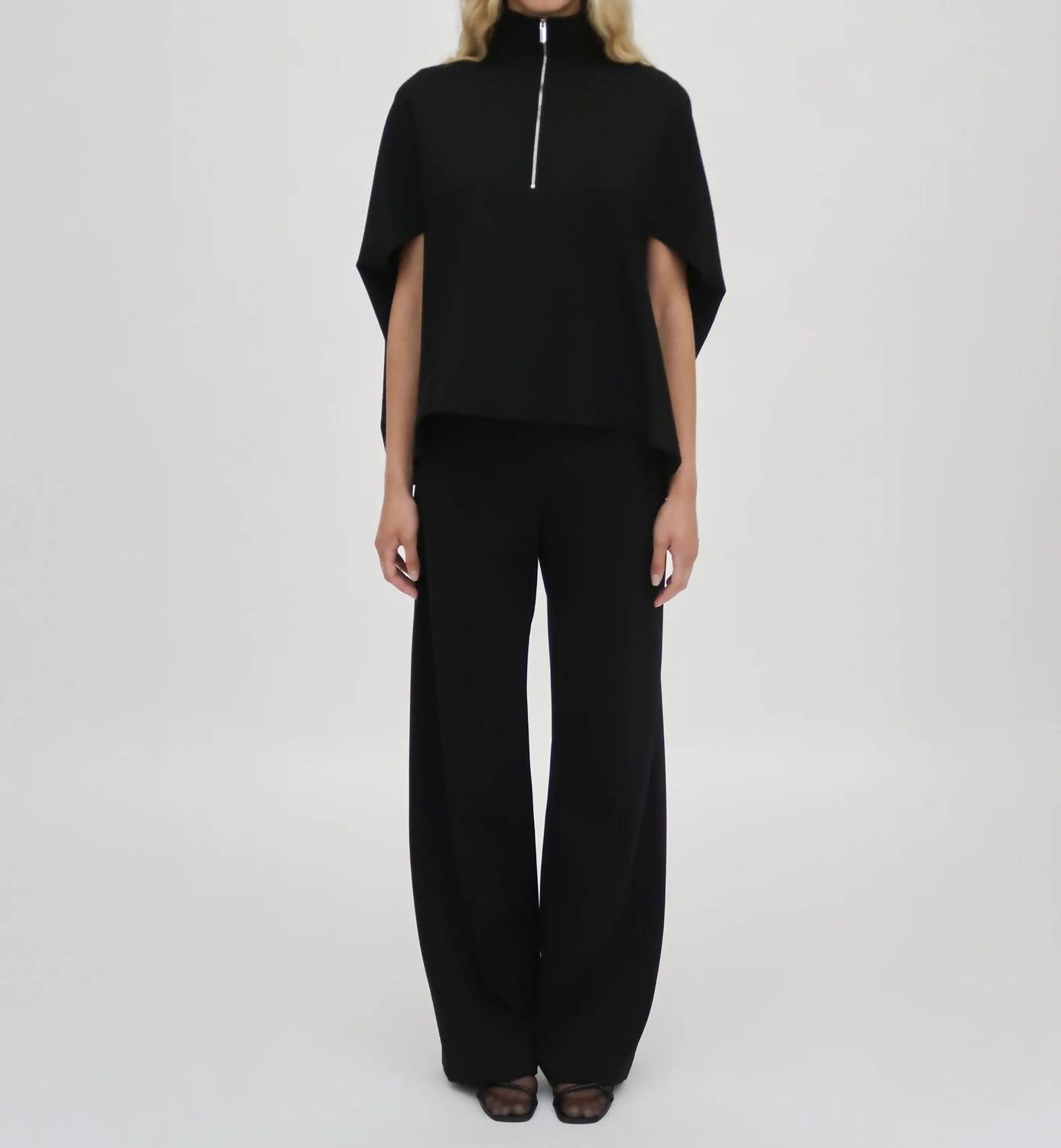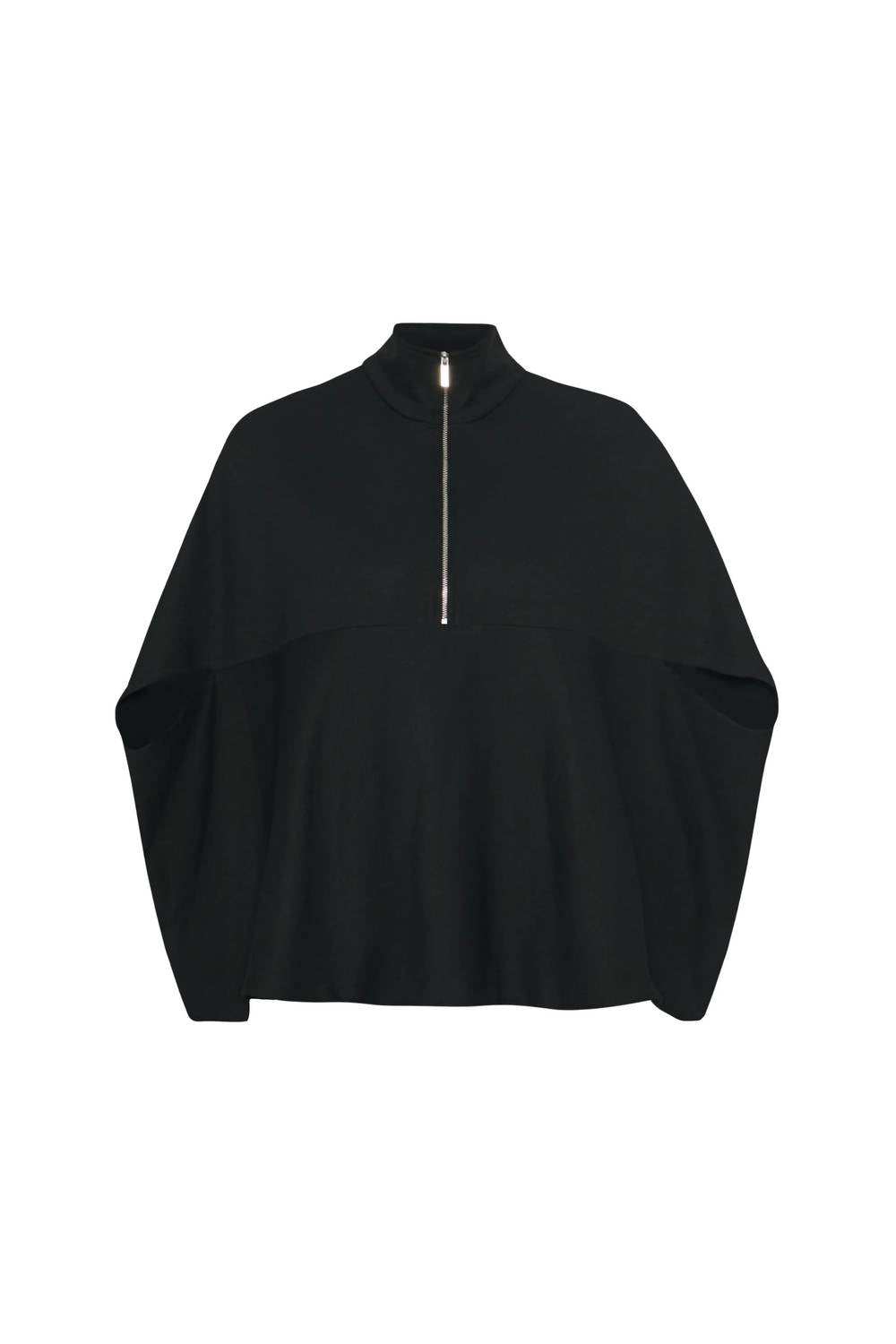 A timeless blouse that will never go out of style. Elevate your wardrobe with the Rosetta Getty Zip Up Cocoon Caftan Top, an elegant choice for your next holiday party. Crafted from a Viscose Blend, this black blouse features a cocoon silhouette and mockneck with three-quarter length sleeves for effortless sophistication. The polished silver half-zip placket closure allows for customizable wear, while the luxurious Interlock Jersey fabric enhances its fluidity. Composition: 93% Ecovero Viscose, 7% Elastane.
