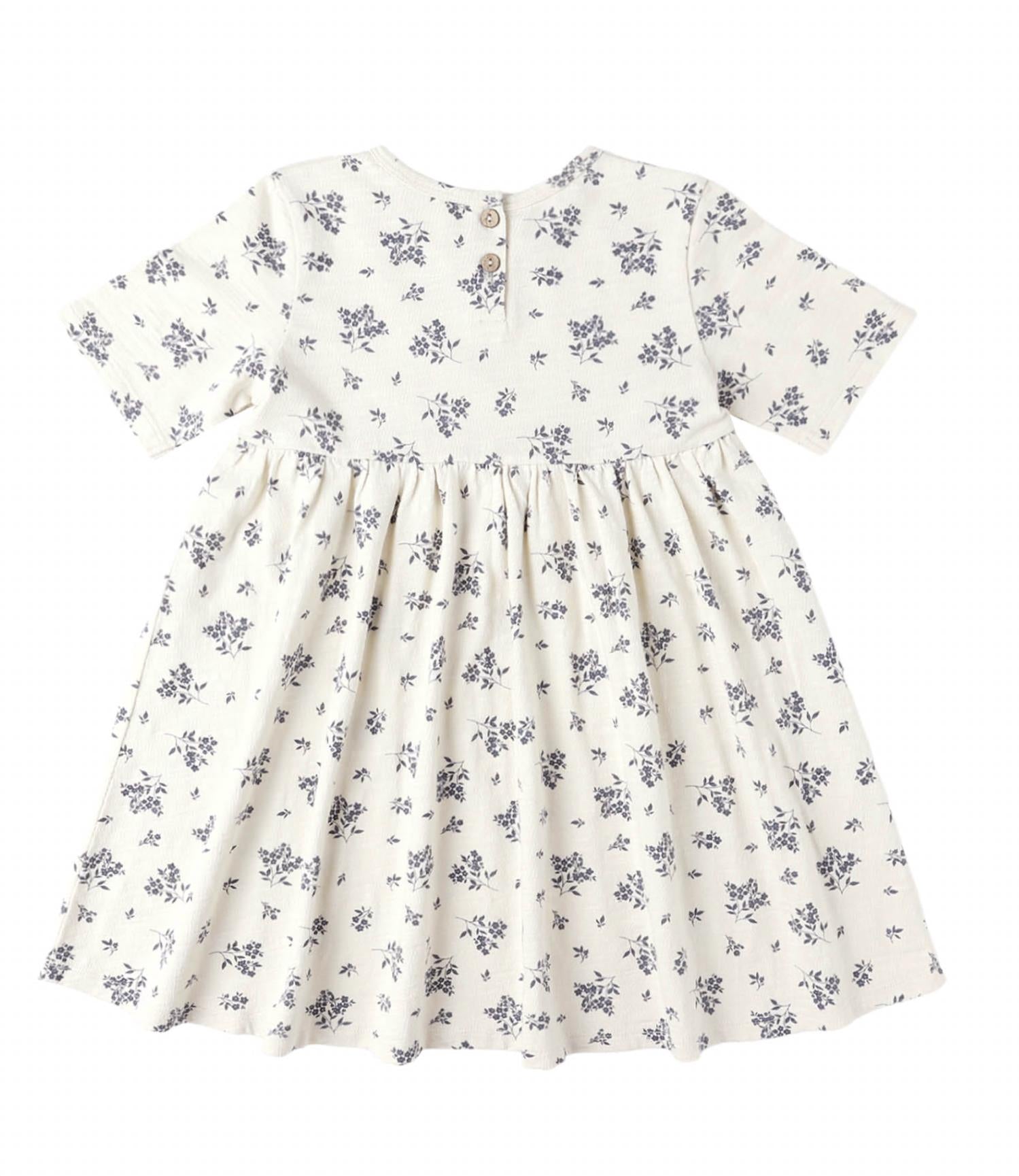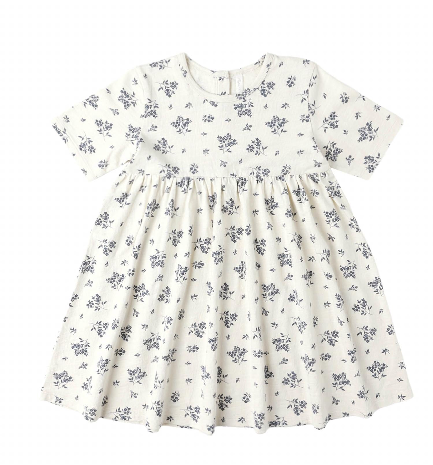 Introducing the Baby's Finn Dress by Rylee + Cru, a charming outfit for your little girl's summer holiday celebrations. This casual streetwear piece features a beautiful blue floral graphic pattern on a natural cotton foundation, ensuring comfort and elegance. Originating from an unknown country, it's designed for ease with machine wash and tumble dry care instructions. Perfect for a holiday party, this dress embodies a graceful and polished appearance.