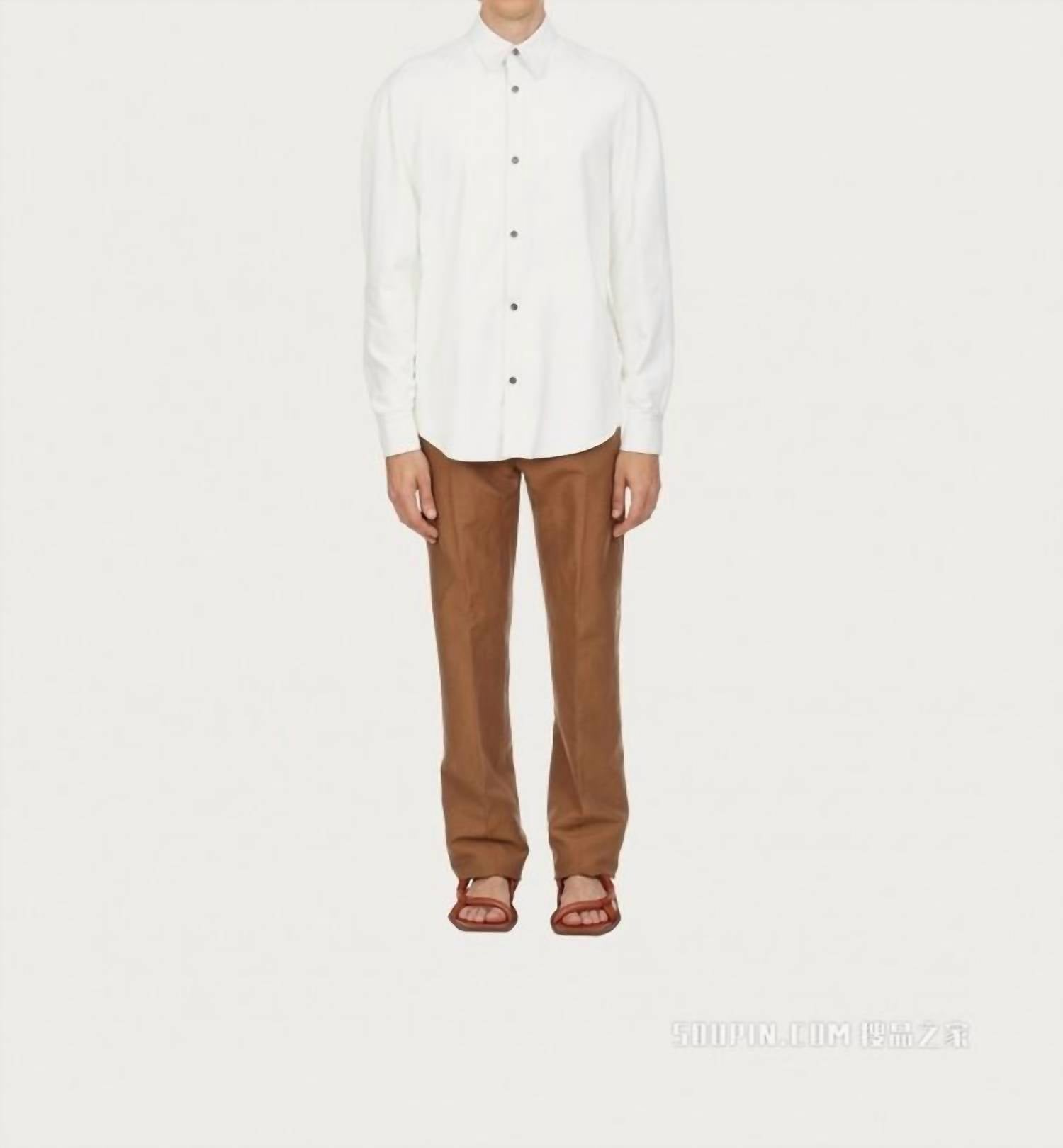 Elevate your travel wardrobe with the Napa Leather Shirt by Salvatore Ferragamo, a minimalist staple in sophisticated white. This collar shirt is made from luxurious leather and features long sleeves with a practical button closure. The solid pattern adds to its timeless appeal, and it includes convenient pockets for easy access to essentials.