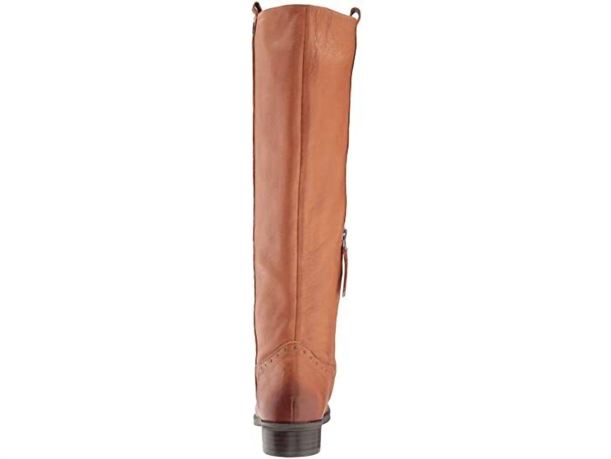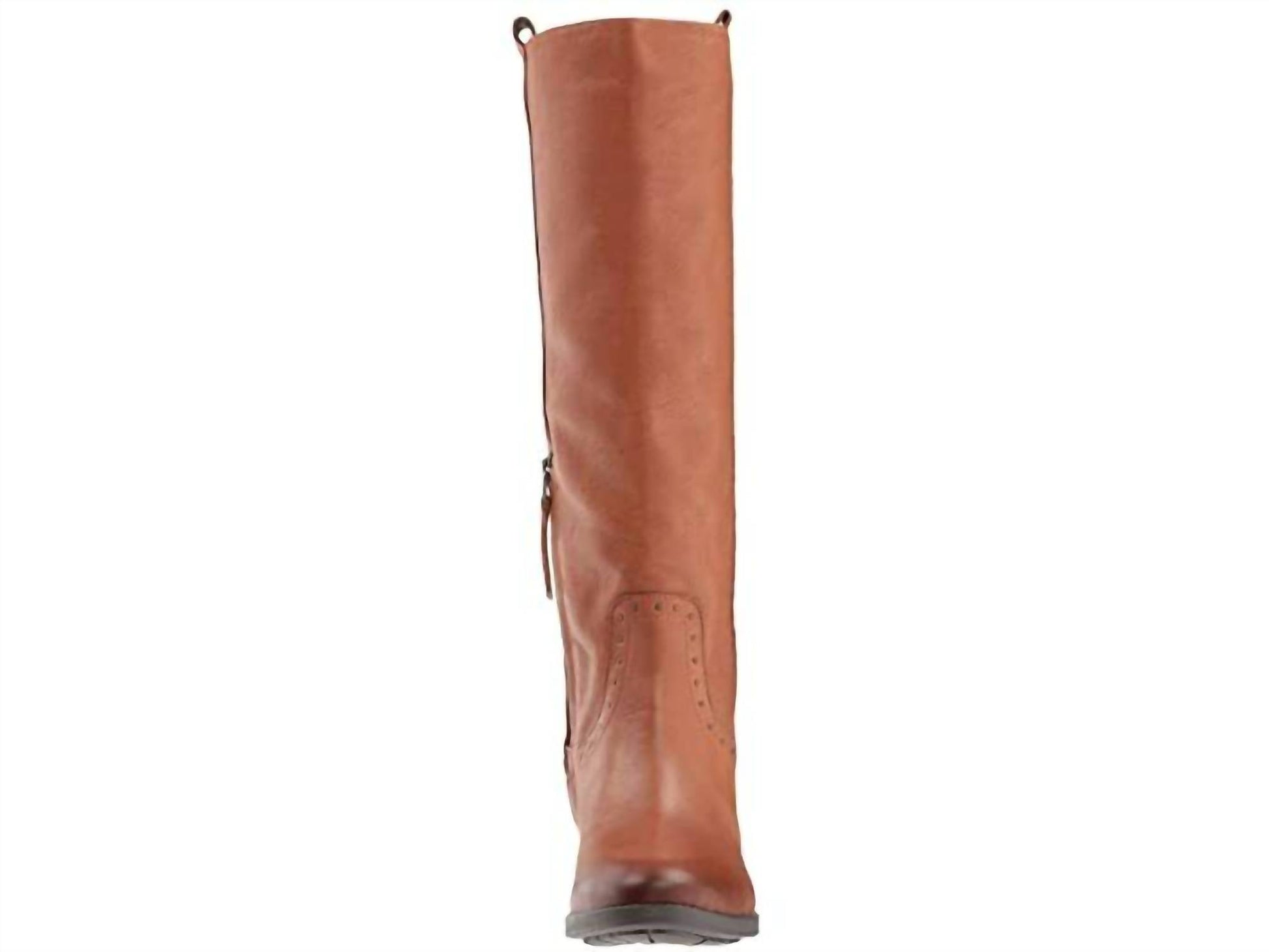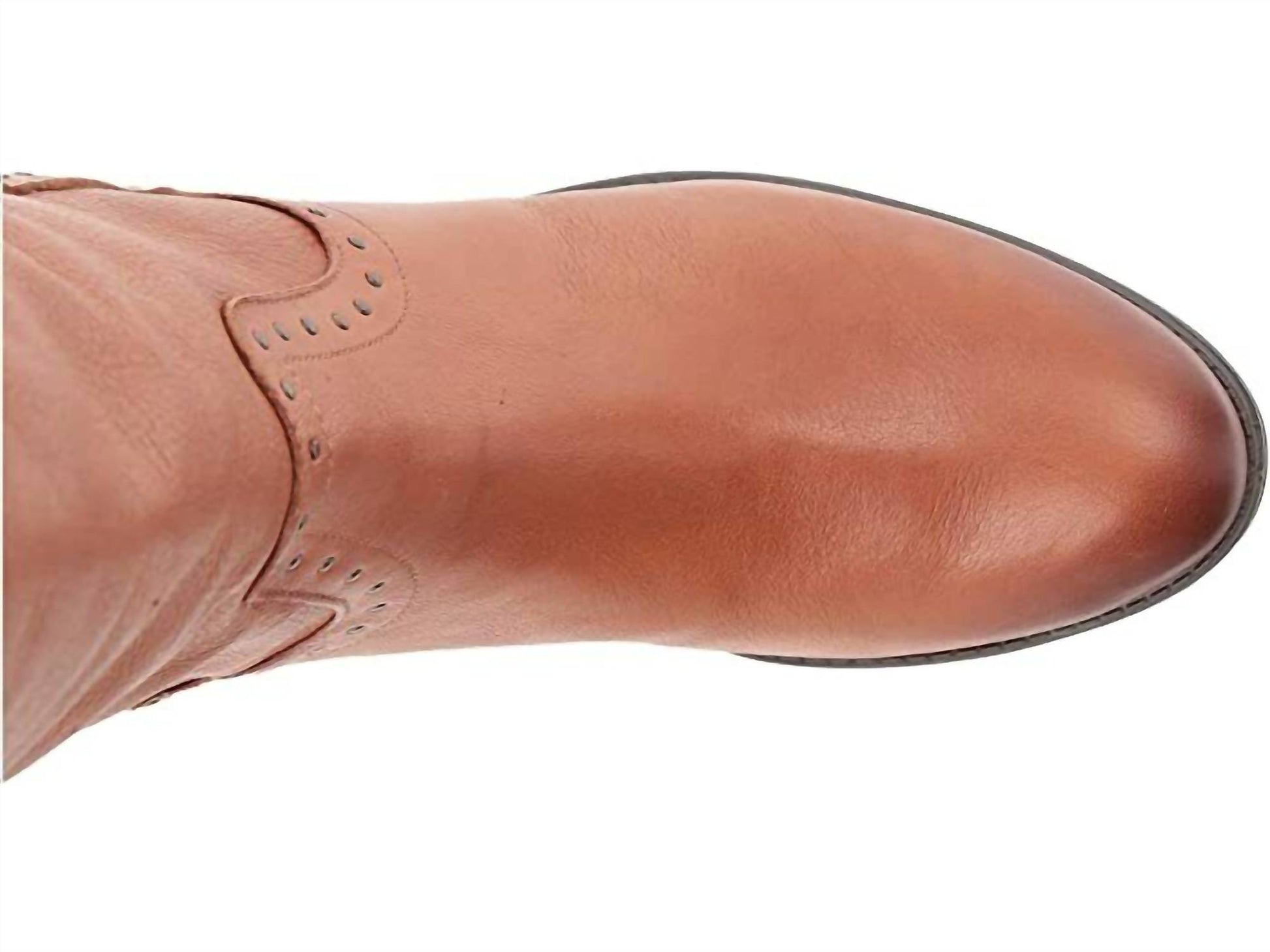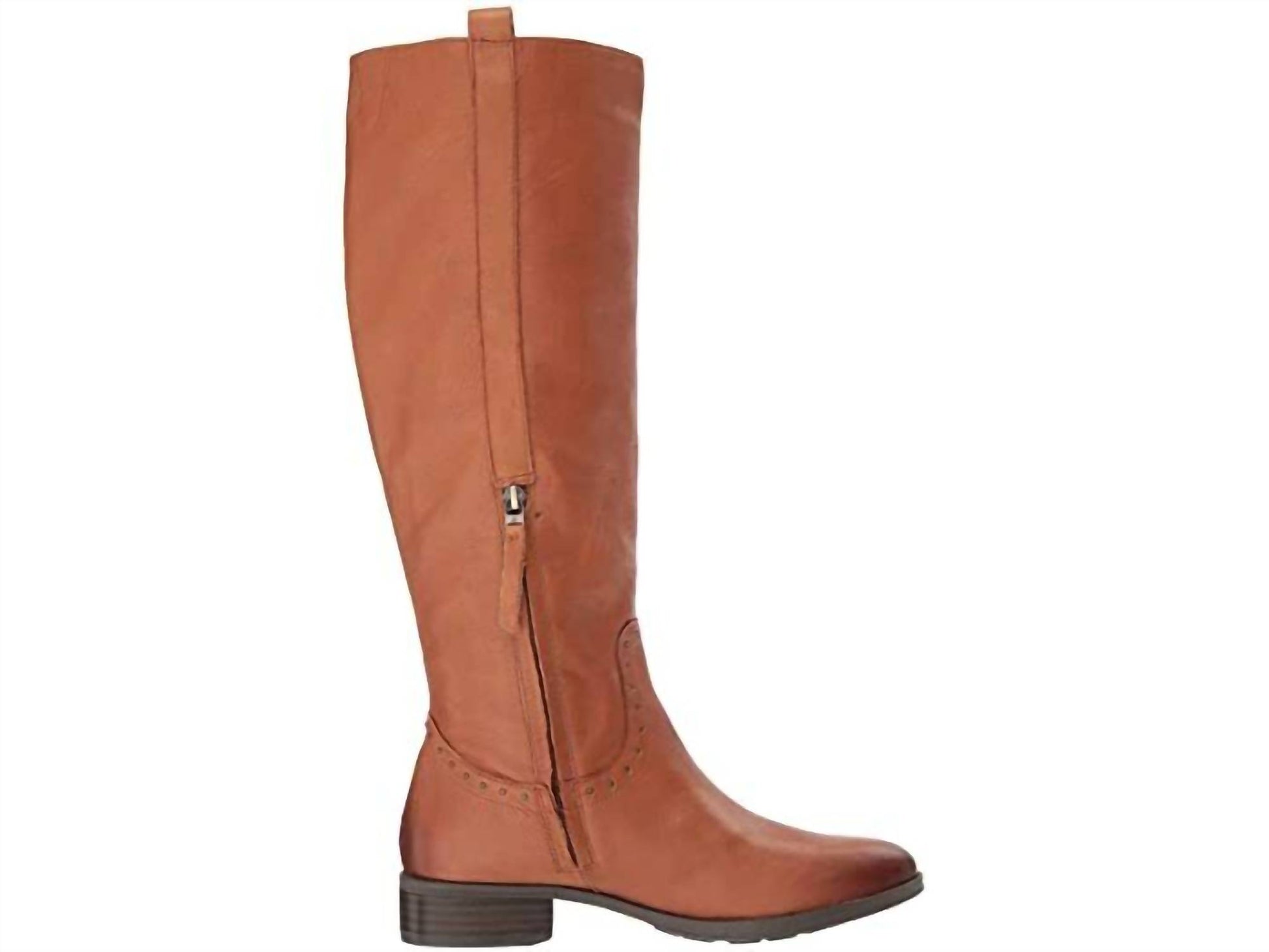 Upgrade your shoe game with these classic heeled boots, designed to merge sophistication and style. Comfortable enough for long days or a night out on the town. Leather upper features micro-studded detailing Pull-on design with half-zip closure Rounded toe features a burnished finish Knee-high construction Dual side pull-tabs offer easy entry Breathable textile lining Lightly padded insole for added comfort Low, stacked block heel Rubber outsole Heel 1.25"