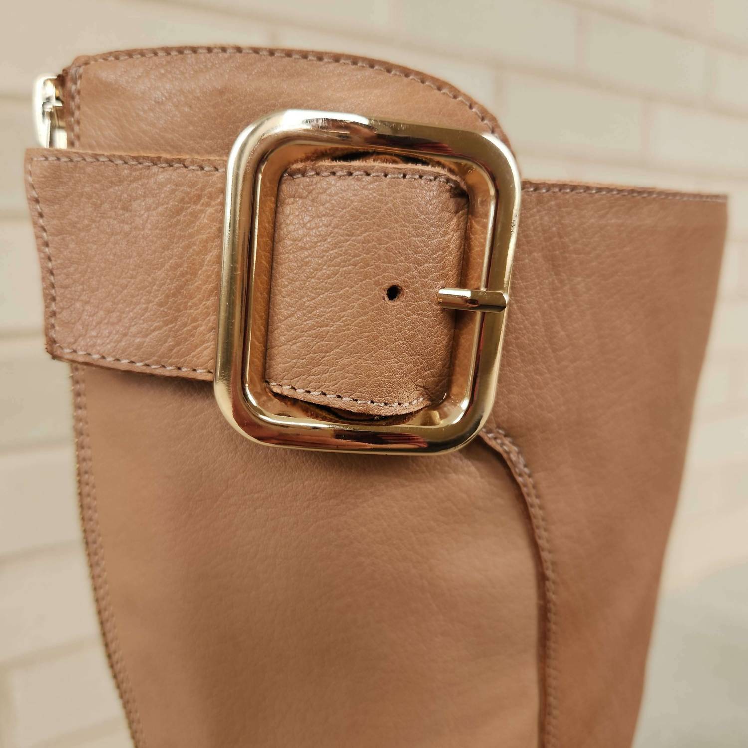 Step out in confidence and showcase your impeccable taste with these fashionable and versatile boots. Their classic style will have you reaching for these boots season after season. Step out in style with the SILENT D Women's Tulti Boots, designed in a chic tan hue that complements any fall wardrobe. Crafted from soft leather with an almond toe and narrow fit, these boots feature a comfortable 3-inch block heel for a flattering lift. The back zipper and gold buckle closure ensure practicality and a secure fit, while the interior lined with soft fabric offers added comfort. Perfect for minimalist trends and vacation occasions, these boots showcase hand-stitched welting for a refined, durable finish.