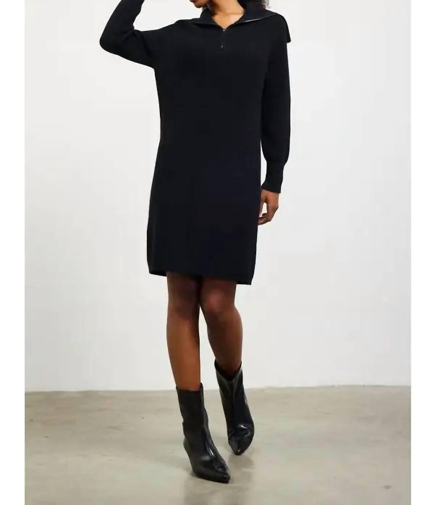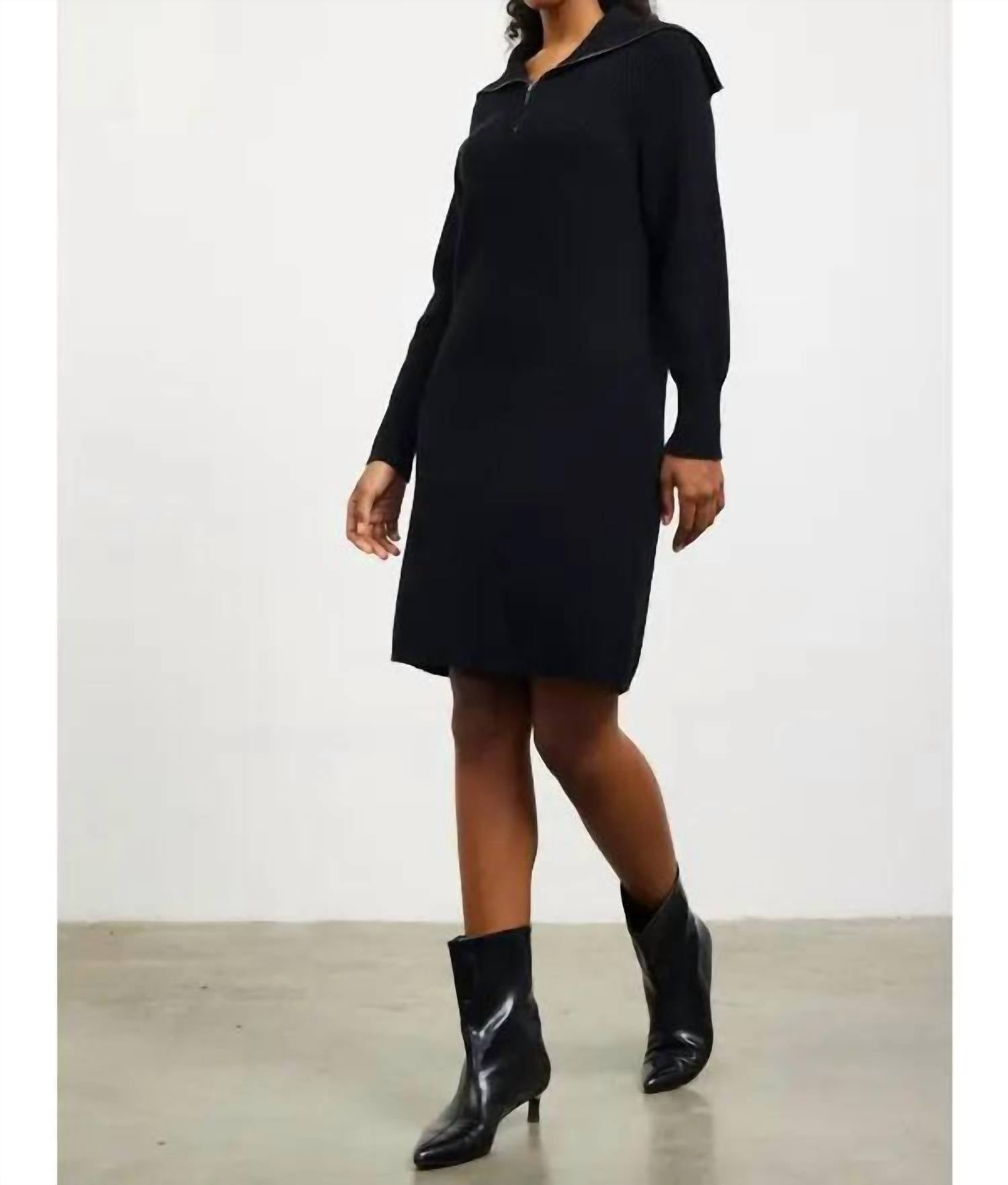 Great fit, cute design, soft fabric. You'll love everything about this long sleeve tee. Meet the Women's Ribbed Zip Front Sweater Dress by SKIES ARE BLUE, a stylish addition for your wardrobe. Crafted from polyester, this navy dress offers long sleeves and falls elegantly just above the knee. With its half-zip collar neckline, it seamlessly combines modernity with comfort. Care: Dry clean only.