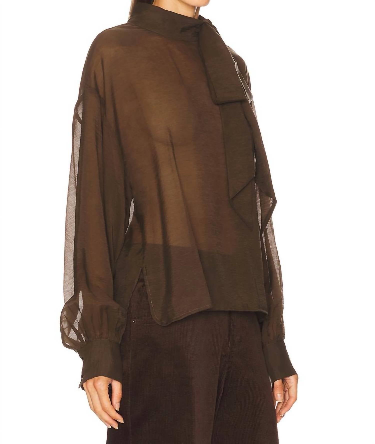A versatile blouse that works from desk to dinner! Elevate your vacation wardrobe with the Sutton Top by Steve Madden in Dark Espresso. This solid, lightweight voile blouse features a chic front bow accent at the mockneck, perfect for a summer statement. Crafted from 75% Lyocell and 25% Nylon, it boasts long sleeves and a concealed back zip closure for a flattering fit. For easy care, simply machine wash as needed.