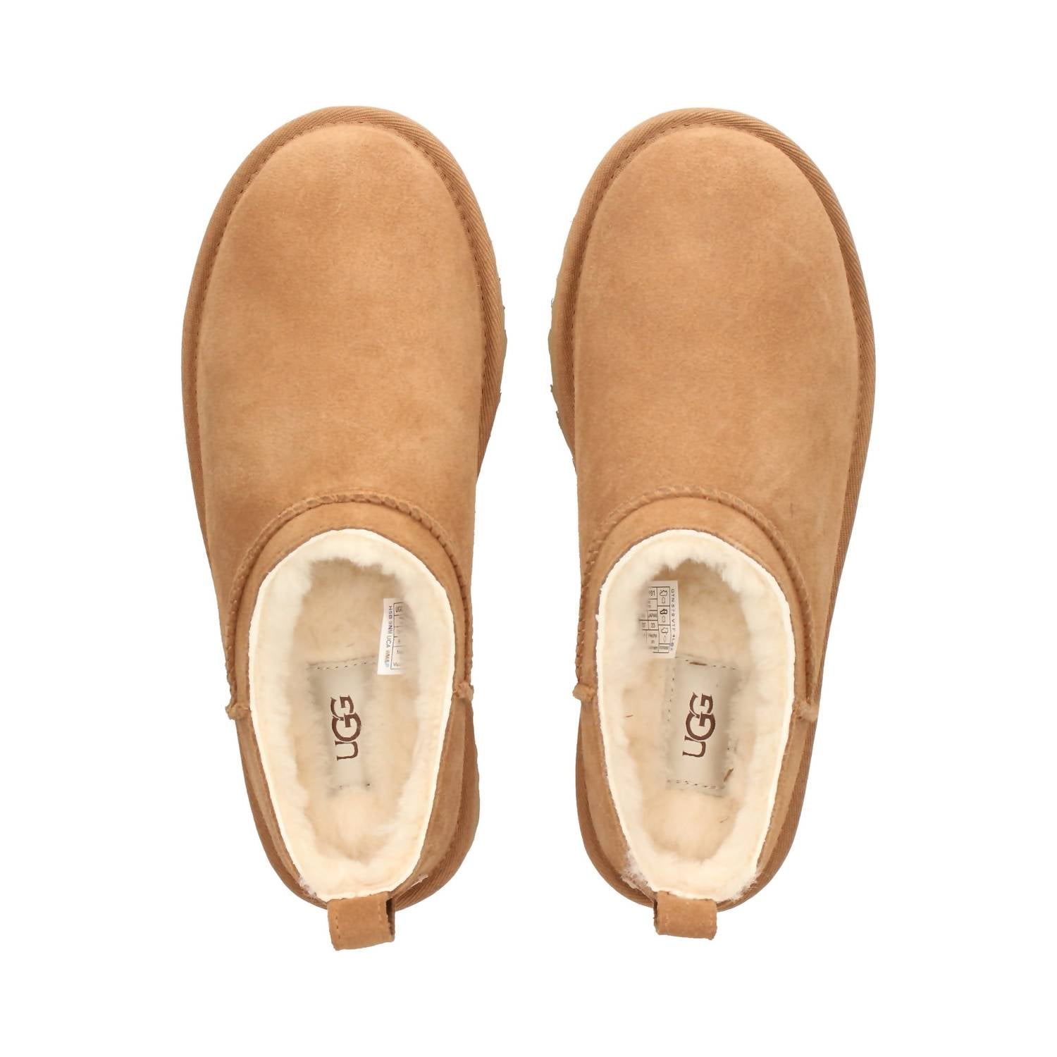 Say hello to the perfect, most versatile boot. The ankle height makes this style easily transition from day to night. Wear them with your favorite skinny jeans and tee for a more laid back look, or pair them with your favorite mini dress and jacket for a night out on the town. Introducing the Women's Classic Micro Boot by UGG, a chic minimalist chestnut ankle boot designed for travel and winter comfort. Crafted from genuine suede with a water-repellent finish, this low-profile boot boasts a luxurious sheepskin lining to perfectly regulate temperature, ensuring plush warmth whether you wear socks or not. Its round toe and flat heel design enhance the natural fit, while the lightweight sugarcane EVA outsole provides exceptional support akin to wearing a slipper. Perfectly balancing fashion and function, this boot is an essential addition to any wardrobe craving comfort and style.