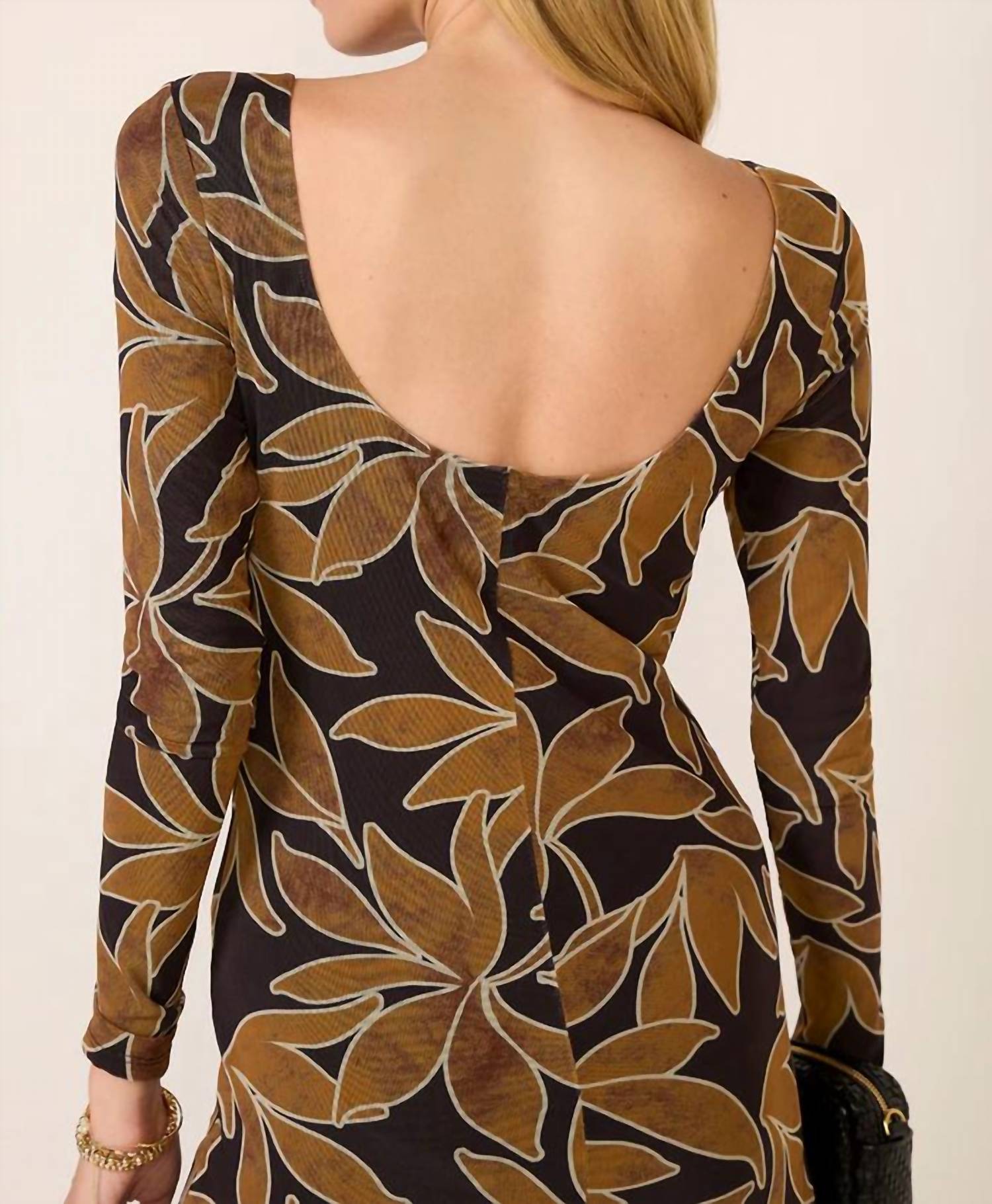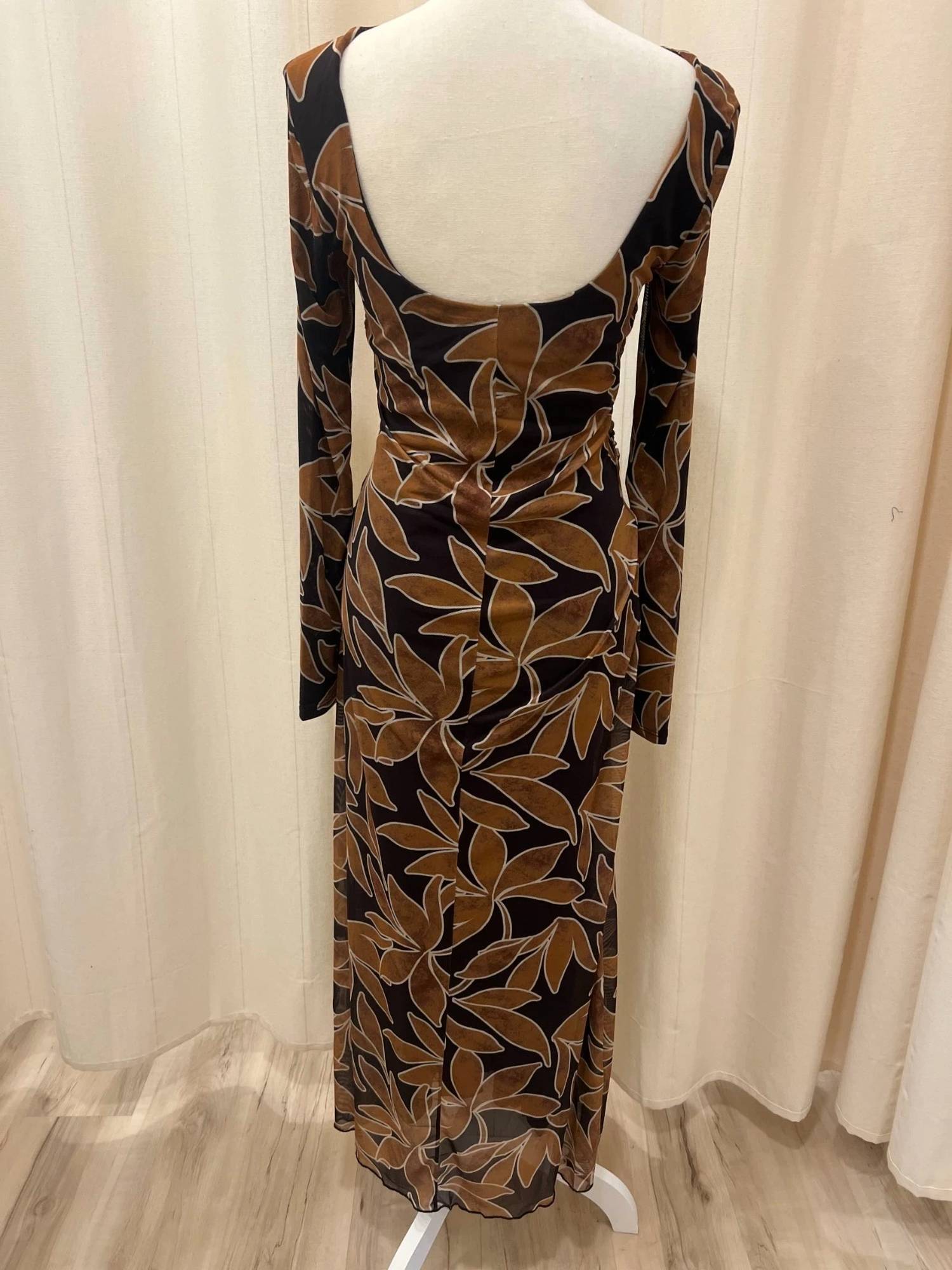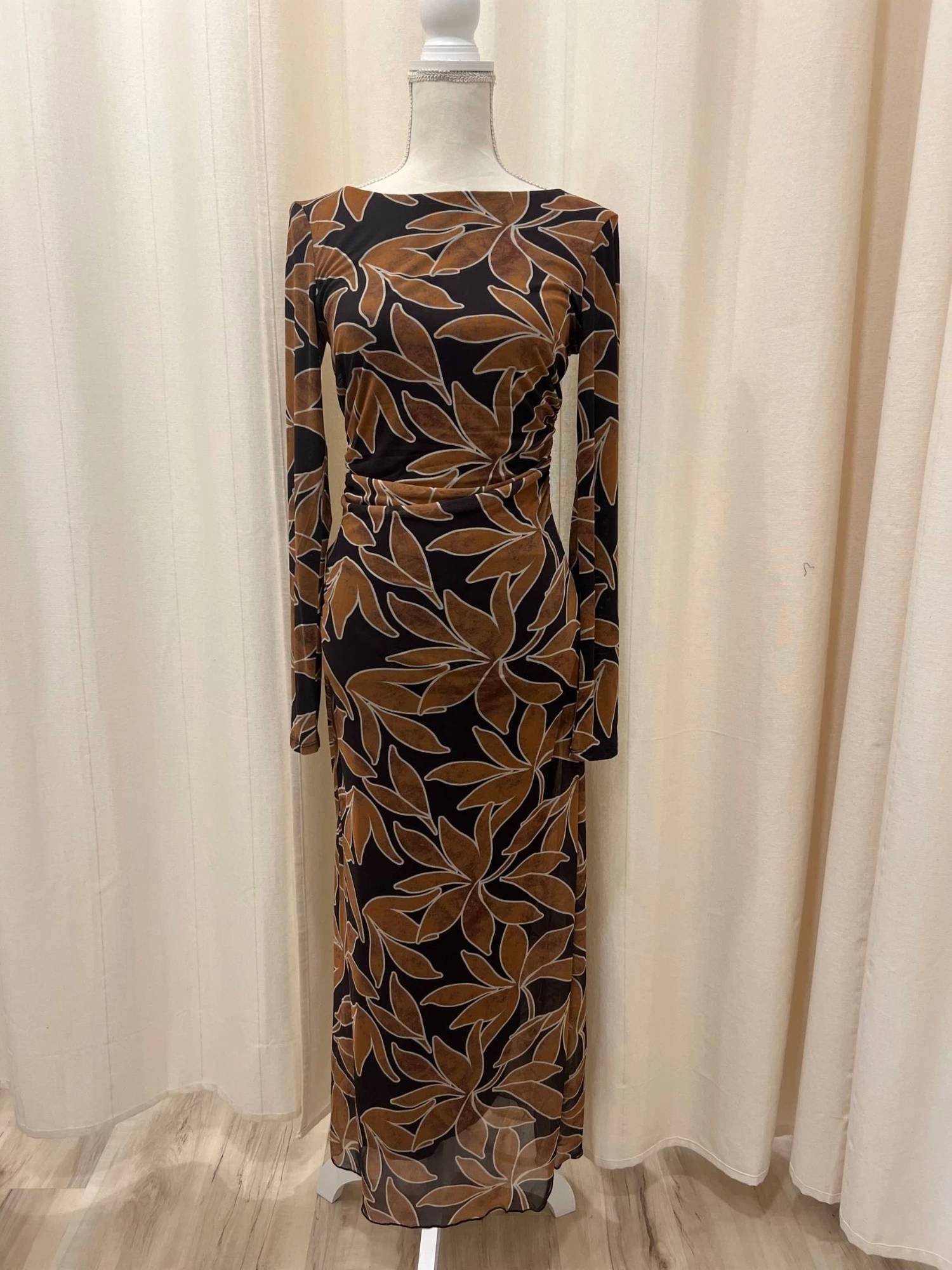 Cute and comfortable, this long sleeve dress has it all. Embrace the enchanting allure of the Spellbound Dress by Z Supply, designed in a captivating brown floral print for fall. This women's sheath dress features long sleeves and a sophisticated boatneck, crafted from a soft blend of 94% polyester and 6% spandex mesh, with a comfortable rayon lining. Its 52-inch maxi length and stylish open back are beautifully complemented by a ruched waist, while a side zipper ensures ease of wear. Care is simple: machine wash on a gentle cycle and lay flat to dry for long-lasting elegance at your next dinner party.