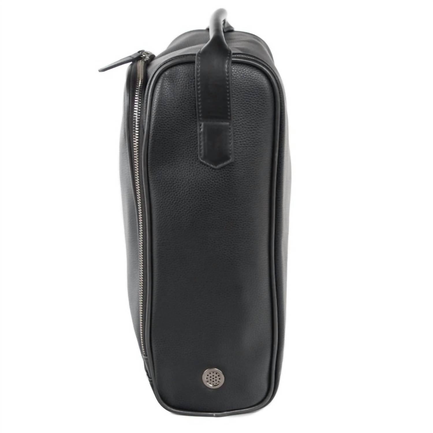 Introducing the Men's Davidson Shoe Bag by Brouk & Co., an essential accessory for shoe storage at home or on the go. This lightweight, zippered bag features a durable center divider and mesh panels for effective ventilation, ensuring your shoes stay clean and aired. It comes with a convenient handle for easy transport. Dimensions are 14”L x 5”W x 10”H, with available colors in Black, Blue, and Brown.