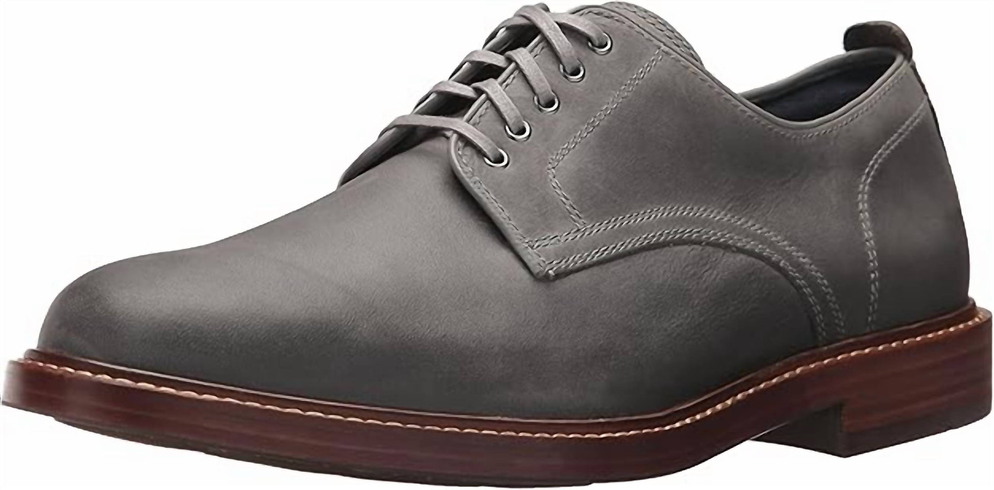 These classic leather Oxford shoes feature a cored-out rubber outsole integrated with proprietary Grand.OS technology for reduced weight and increased flexibility. The uppers are constructed from casual leather with a leather and fabric lining, while the heel and sole edges are finished with a leather veneer.
