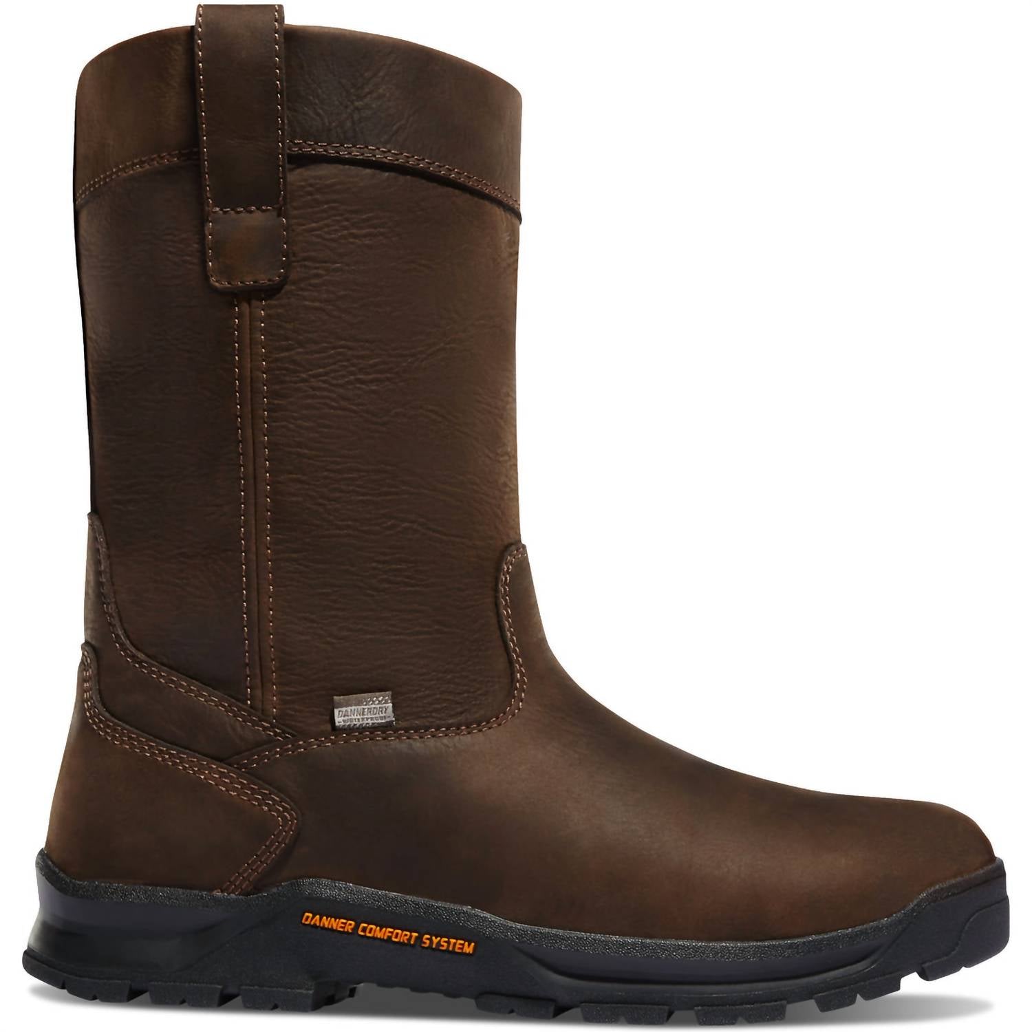Crafted for comfort and durability, the Men's Crafter Wellington Composite Toe Boot by Danner in rich brown is perfect for fall travel. These boots feature a roomy round toe, ensuring zero break-in time and preventing hot spots, making long days comfortable. Made from durable nubuck leather, these boots include a waterproof Danner Dry liner and an extra-plush DCS footbed for all-day contentment. Ideal for the modern man seeking practical footwear with lasting quality and protection.