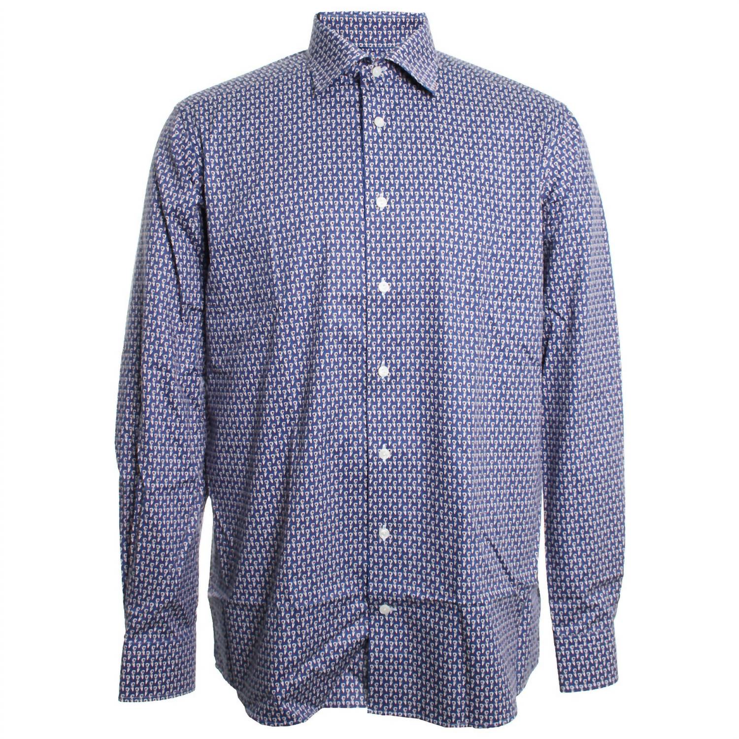 Elevate your wardrobe with the Men's Poker Motif Shirt by Eton, a striking piece in navy designed for memorable style. This long sleeve shirt is crafted from 100% cotton, featuring a distinctive winning hand print pattern. Made in Romania, it features a classic collared neckline and button front closure for a refined finish. Care instructions recommend dry cleaning to maintain its vibrant look.