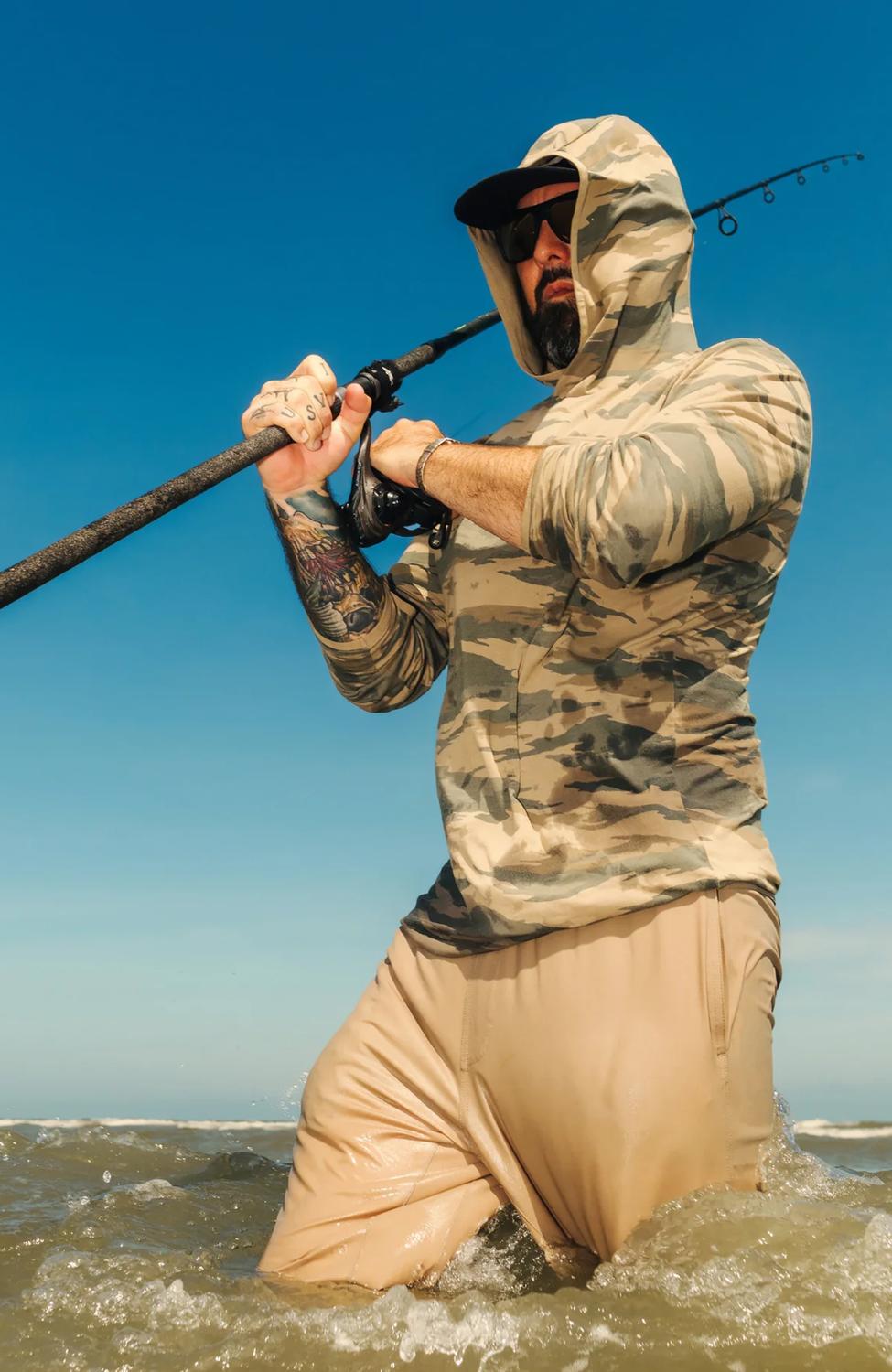 Discover the Men's Bamboo Lightweight Long Sleeve Hoodie by FREE FLY, a perfect combination of style and functionality in Congaree Camo. Crafted from 70% Viscose from Bamboo and 30% Polyester, this lightweight hoodie offers unbeatable breathability and natural odor resistance. Ideal for long days outdoors, it features a pull-on closure with a crossover hood and thumbholes for enhanced sun protection, boasting a UPF 20+ rating. Care instructions recommend hand washing and laying flat to dry, ensuring this piece remains your go-to for fall travel and streetwear occasions.
