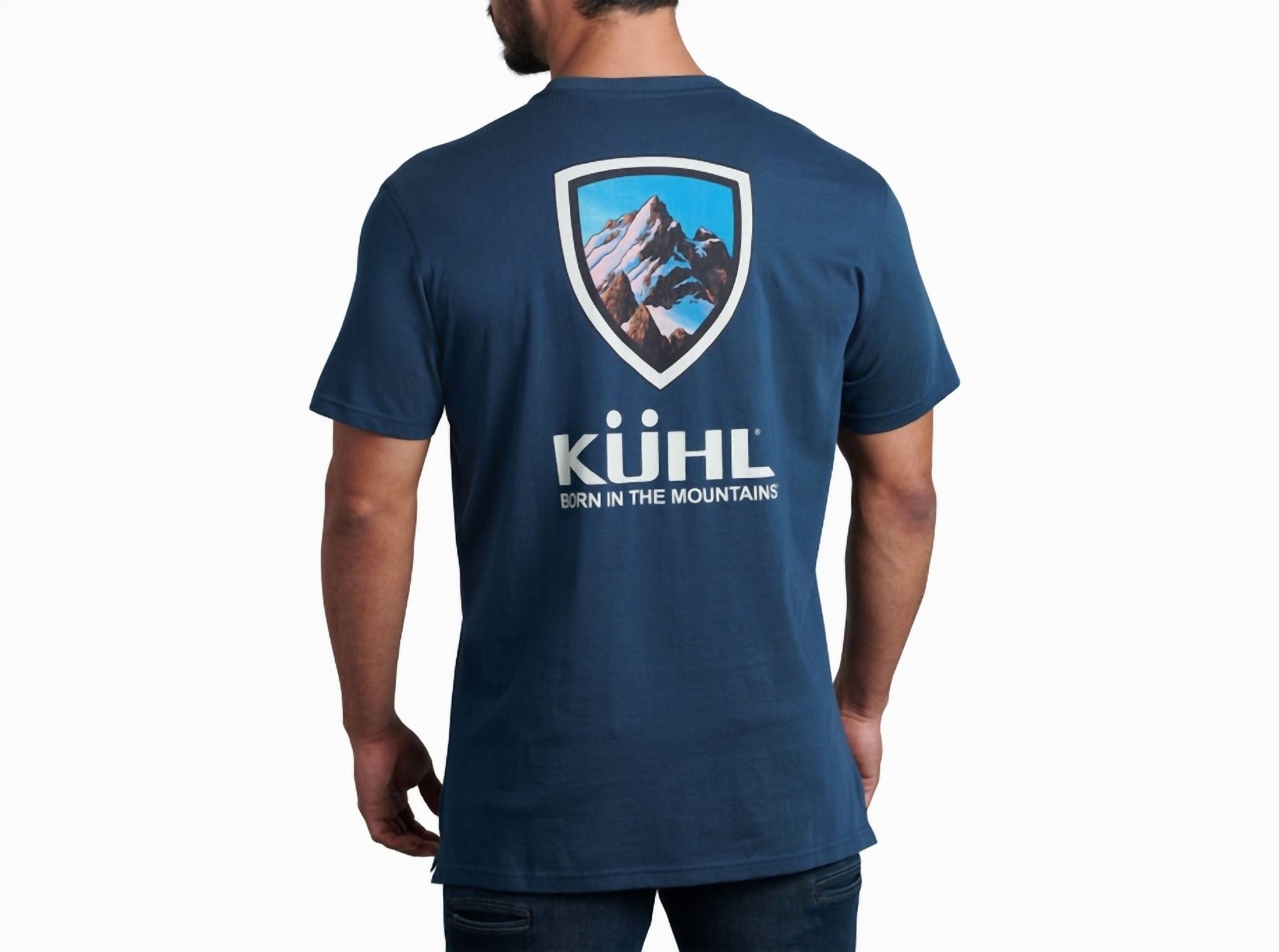 The Mountain Tee by KUHL offers a stylish option for your vacation wardrobe in a bold Pirate Blue color. Designed with short sleeves and a classic crewneck, this tee is crafted from comfortable cotton for easy wear. It features a graphic pattern that aligns with the latest streetwear trends. This pull-on style is easy to care for—simply machine wash and tumble dry.