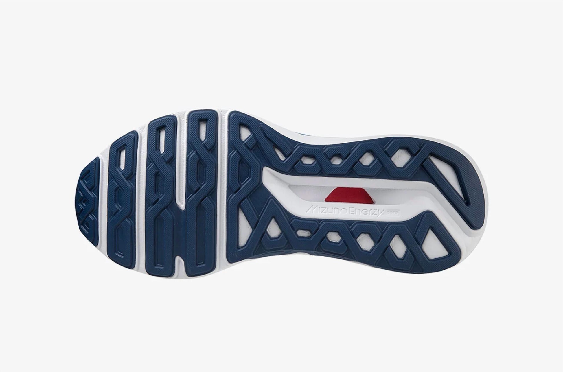 Introducing the Men's Wave Horizon 6 Running Shoes by MIZUNO, designed for those who seek peak performance and comfort. Featuring a lightweight Woven upper, these shoes offer an adaptive fit, enhancing your running experience. With MIZUNO ENERZY Core technology, every stride is softer and more responsive, complemented by a Foam Wave design for exceptional stability. Ideal for summer workouts, these estate blue shoes incorporate sustainable materials, combining style with eco-conscious innovation.